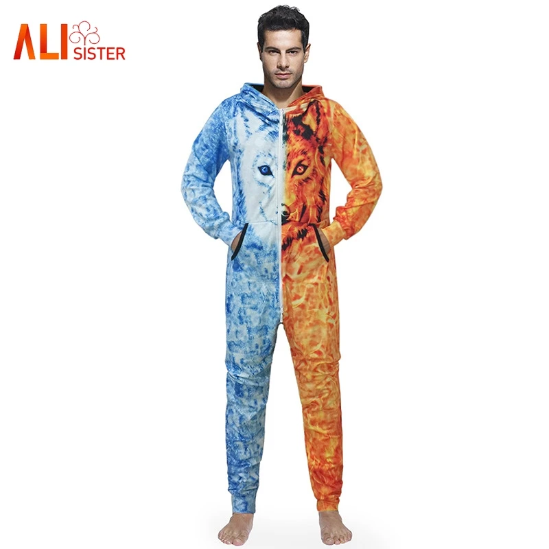3d комбинезон с принтом волка, мужские комбинезоны с длинным рукавом, повседневный свитшот, толстовки, длинные штаны, мужские комбинезоны, Рождественский костюм на Хэллоуин