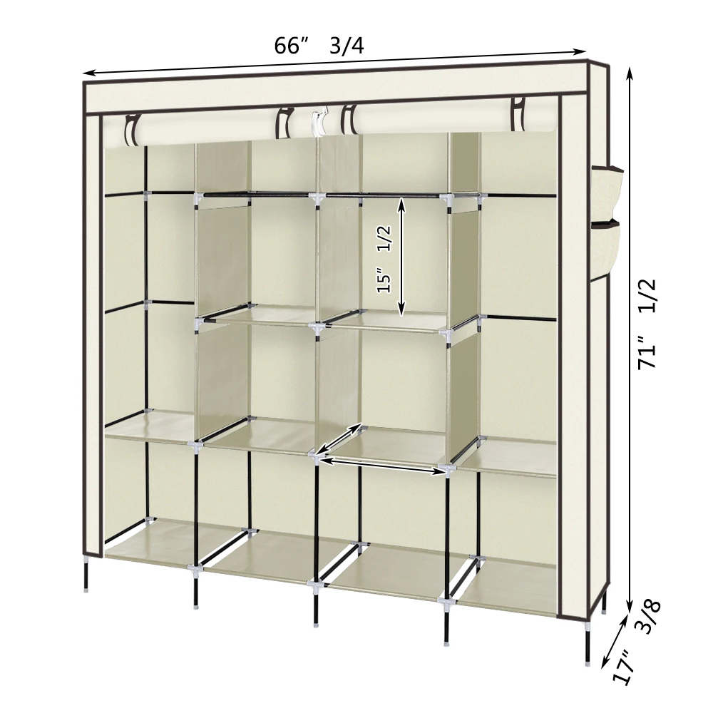 Введение: Наш портативный органайзер для хранения одежды 67 дюймов изготовлен из отборного нетканого материала, высококачественной стальной трубки и пластиковых разъемов PP, которые будут долговечны и отвечают вашим долгосрочным потребностям в хранении. Размер гардероба для одежды делает его подходящим для организации небольших комнат и гардеробных. Подвижная Улучшенная вешалка для одежды и 12 полок для хранения обеспечивают вам достаточно места как для ваших длинных нарядов, так и для одежды в сложенном виде. Пылезащитная крышка на молнии обеспечивает удобство очистки вашего товара от пыли и водостойких слоев ткани. Он будет отличным удобным и функциональным. Не стесняйтесь покупать один! Особенности: 1. Прочная и долговечная конструкция: изготовлено из отборных нетканых материалов, водостойких тканей ярусов, высококачественных стальных труб и пластиковых разъемов PP, этот портативный шкаф для хранения удовлетворит ваши долгосрочные потребности в хранении. 2. Компактный органайзер: большой размер 66 3/4 "x 17 3/8" x 66 3/8 "/71 1/2" (с нижними стержнями) (169,5x44x168,5/181,5 см), что делает его подходящим для организации ваших маленьких комнат и гардеробных. 3. Просторный шкаф для хранения: подвижная вешалка для одежды и 12 полок для хранения обеспечивают вам достаточно места как для ваших длинных нарядов, так и для сложенной одежды. 4. Пылезащитная крышка и водостойкий слой: Пылезащитная крышка на молнии, предлагаемая для защиты вашего товара от пыли и водостойких слоев ткани, легко моется. 5. Удобный в использовании и сборке: этот удивительный шкаф позволяет легко получить доступ к вашей одежде или повседневным аксессуарам; Простая установка, не требуется никаких инструментов. Примечание: 1. При получении товара, пожалуйста, подтвердите товар в соответствии со списком инструкций. Как только вы найдете меньше деталей, пожалуйста, предоставьте соответствующие фотографии, чтобы связаться с нами. Мы разберемся в это время. 2. Пожалуйста, установите товар с инструкцией по эксплуатации. 3. Рекомендуется, чтобы установка не была слишком жесткой, чтобы легко регулировать. После установки конструкции, прочное соединение для большей стабильности. Технические характеристики: 1. Наименование товара: 67 "портативный шкаф для одежды, домашний шкаф, органайзер для хранения одежды с полками 2. Материал домашнего гардероба: нетканый тканевый чехол, стальная труба и пластиковое соединение 3. Размеры домашнего гардероба: 66 3/4 "x 17 3/8" x 66 3/8 " /71 1/2" (с нижними стержнями) (169,5x44x168,5/181,5 см) 4. Цвет домашнего гардероба: опционально Посылка включает в себя: 1 x портативный шкаф Инструкция (1 шт.) Примечания: 1. Пожалуйста, убедитесь, что все полюсы достигают нижней части пластиковых соединительных отверстий. 2. Будьте внимательны во время сборки и сборки.