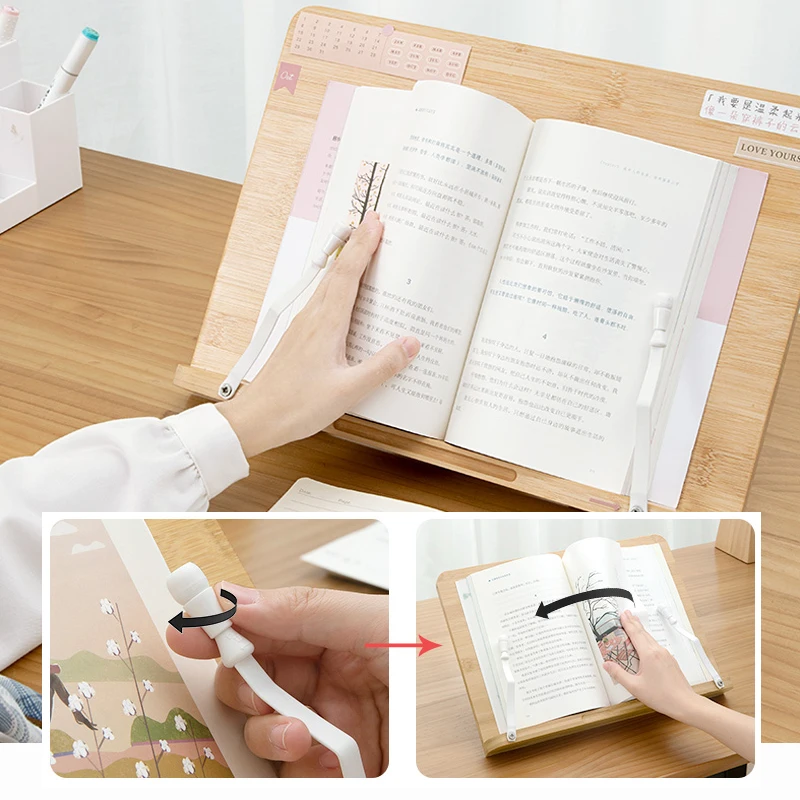 Органайзер для книг регулируемый держатель для книг лоток и скрепки для страниц-стойка для чтения кулинарных книг переносная книжная полка деревянная подставка для книг