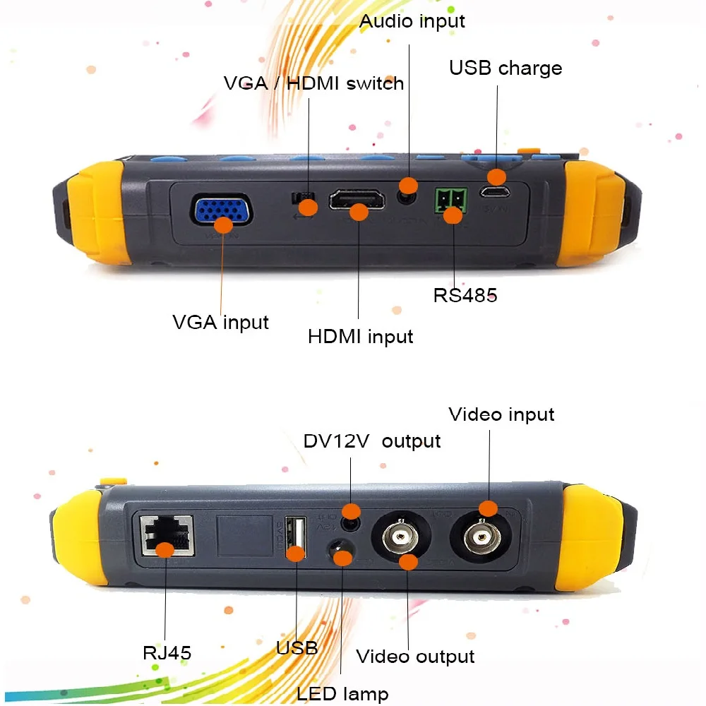 Item Descriptions: Upgraded 4 IN 1 5MP AHD TVI 4MP CVI Analog Security Camera Tester IV8W 5 Inch CCTV Tester Monitor VGA HDMI Input UTP Cable Test IV8W support CVBS + AHD (5MP) + TVI (5MP) + CVI (4MP) Camera VideoTest: (1) AHD Signal test: 5MP 4MP 3MP 1080P 720P; (2) TVI Signal test: 5MP 4MP 3MP 1080P 720P; (3) CVI Signal test: 4MP 3MP 1080P 720P; Product overview: The new HD coaxial tester is developed for the on-site installation and maintenance of HD coaxial camera, like TVI,CVI, AHD,Analog, CVBS. It also provides many useful functions, such as video display, PTZ control, DC12V output power, audio test, image generator, VGA video signal input, HDMI1.0 signal input, RS485 data searching, cable testing, LED lamp etc. Main Features: * Build in High-resolution 5.0 inches 800 (RGB) x480 wide viewing angle display, * Support PAL/NTSC standard video signal. CVBS testing. * PTZ controller * Image generator * DC12V 1A output power . * Audio testing * Improvement cable test * VGA/HDMI input * TVI camera test * CVI camera test * AHD camera test