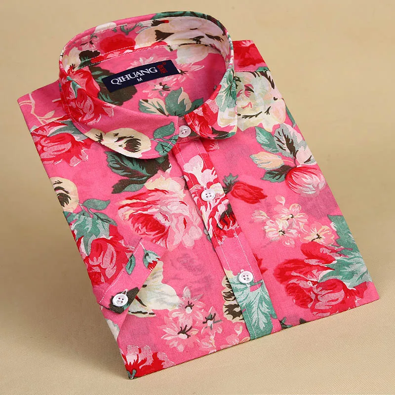 QIHUANG женская рубашка с коротким рукавом, Повседневная хлопковая рубашка с отложным принтом, большие размеры, модные женские топы и блузки, S-5XL