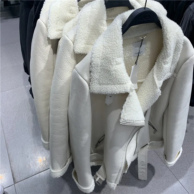 Зимнее пальто, тонкий пояс, искусственная кожа, куртка, пальто для женщин, однотонная, на молнии, повседневная, толстая, теплая, шерсть, ягненок, куртки, верхняя одежда, женские топы