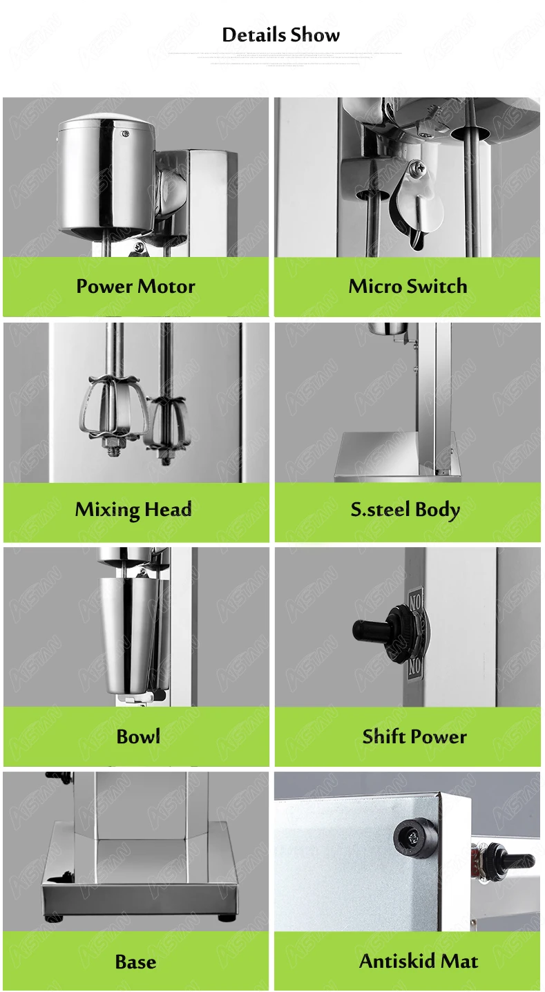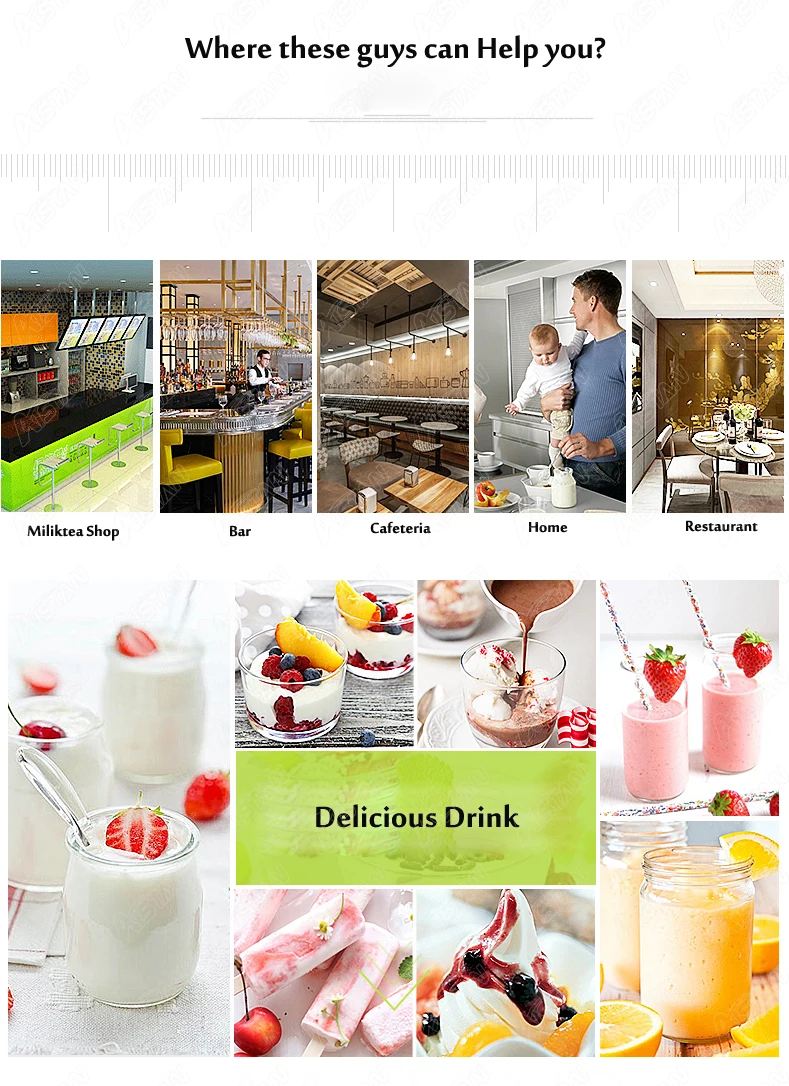 1. Молочный Шейк может сделать вкусные напитки. Это новый дизайн, превосходный по производительности и роскошный и элегантный внешний вид. 2. Основное сырье для приготовления доильного молочного коктейля включает молоко, порошок мороженого, ледяной блок, различные свежие соки, свежие фрукты и т. д. 3. Вкусные многоразовые молочные шейкеры, напитки для здоровья смешиваются в ваших любимых конфетах, печенье, фрукты или орехи 2 скорости для смешивания большого разнообразия рецептов чашки для смешивания из нержавеющей стали
