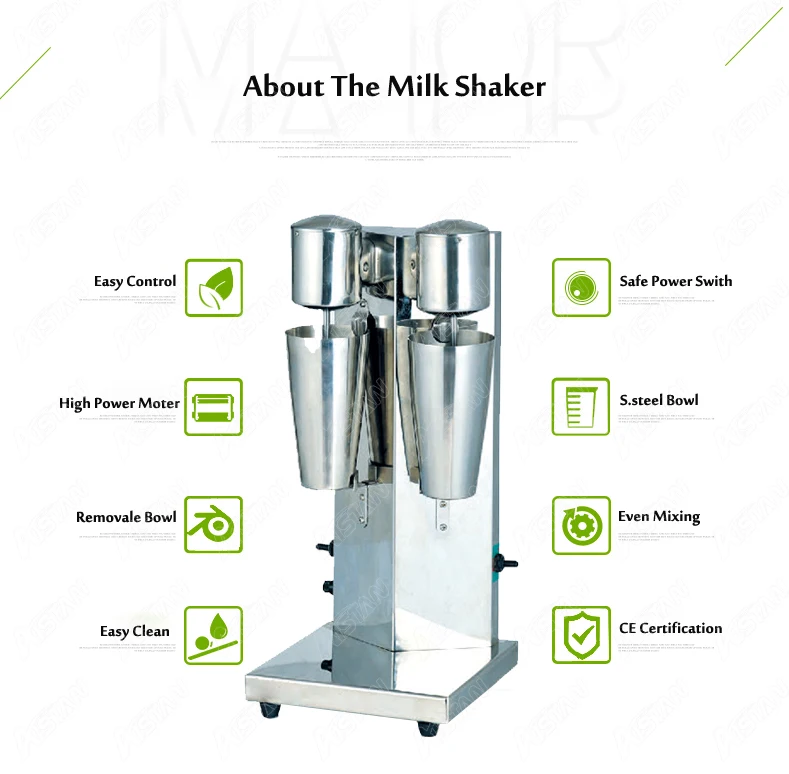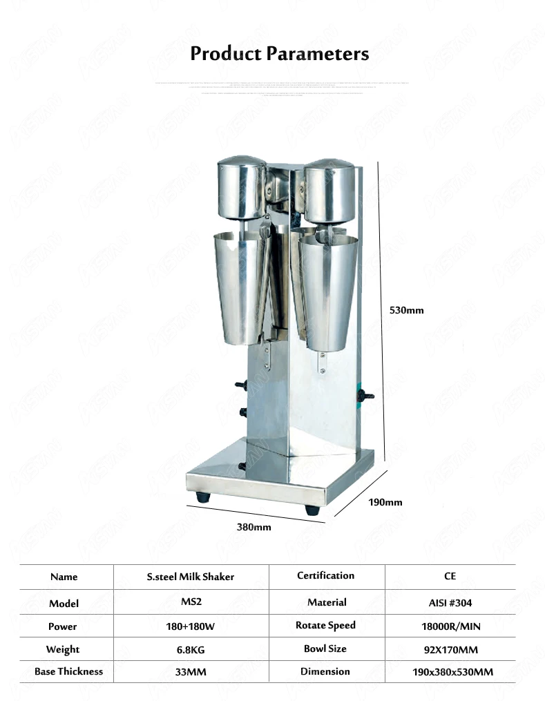 Двойной головкой молочный шейкер Размер: 190*380*520 мм Мощность: 0.3KW Вес нетто: 8,2 кг
