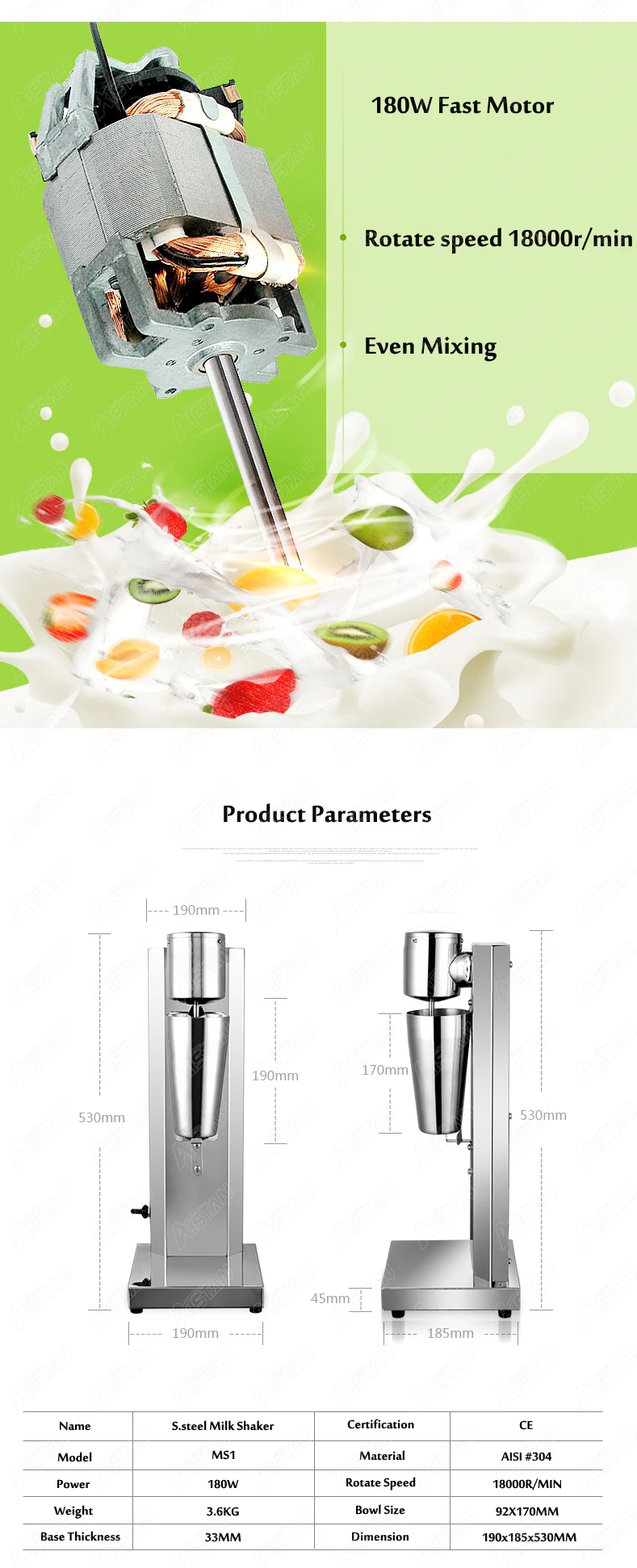 Одна осветительная головка, молочный шейкер Размер: 190*180*520 мм Мощность: 0.15KW Вес нетто: 4,7 кг