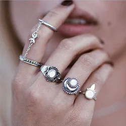 Женский винтажный античный серебряный набор колец в стиле бохо, кольцо на палец средней длины в стиле ретро