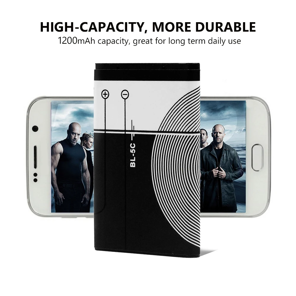 Строгий контроль качества и прочный материал для увеличения срока службы батареи, с большой емкостью 1200 мА · ч, меньше беспокойтесь о том, что ваш сотовый телефон исчезнет в течение короткого времени.