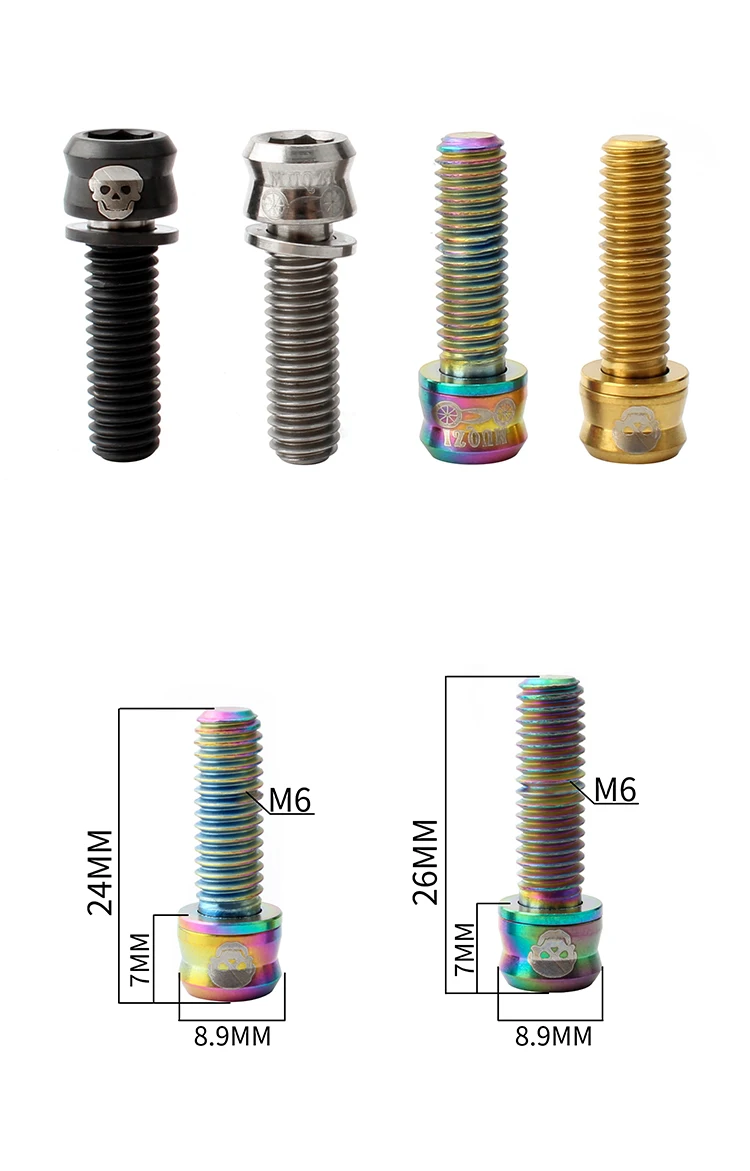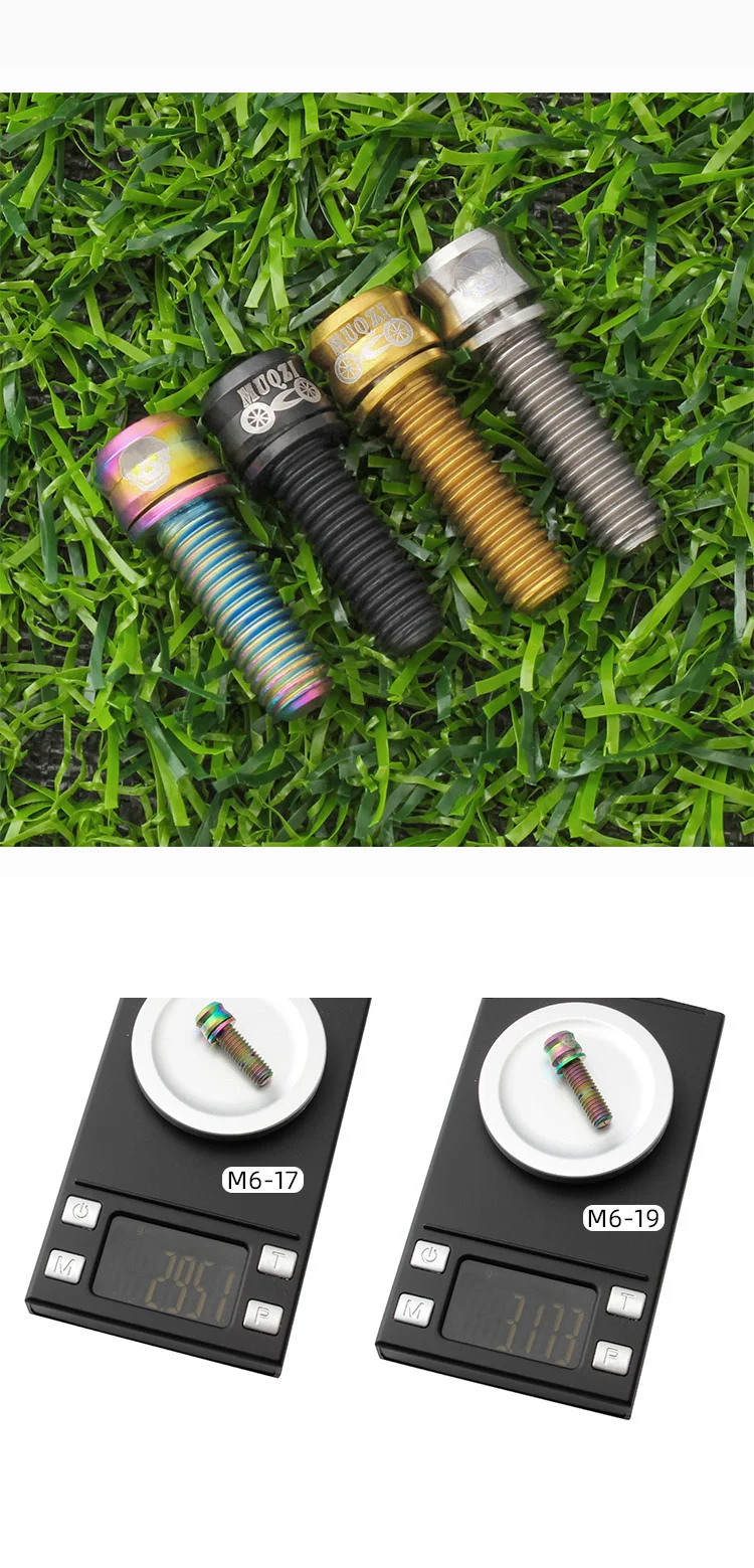 Материал: титановый сплав Спецификация: M6 * 17 M6 * 19 (17/19 относится к расстоянию на резьбе) Размер: 6*7*8,9 мм Цвет: натуральный титан, цвет насыщенный, золотой, черный Вес нетто: 3g Упаковочный лист: винт * 4 Для: установки дискового тормоза велосипеда/гидравлического тормоза/ручки и других частей. (Есть больше спецификаций в магазине)