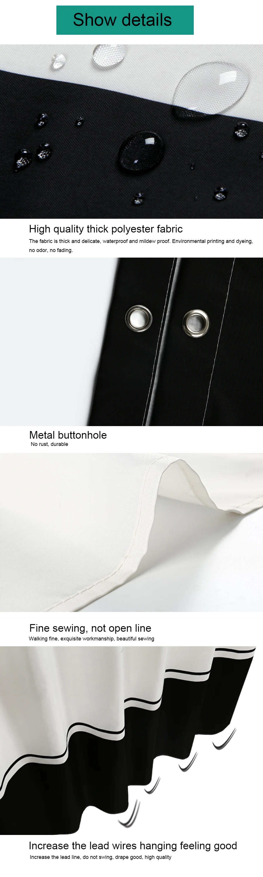 Бренд: K-water/water Mr Стиль: Современный Материал: полиэфирная ткань Размер занавески для душа (Ширина * высота) или (длина * высота) 100*180 см, 100*200 см, 120*180 см, 120*200 см, 150*180 см, 150*200 см, 180*180 см, 180*200 см, 200*180 см, 200*200 см, 220*200 см, 240*200 см Вес: 0,38 кг/маленький size-0.8KG/большой размер Тип: черная и абрикосовая полосатая занавеска для душа Посылка: 1 * занавеска для душа с крючками