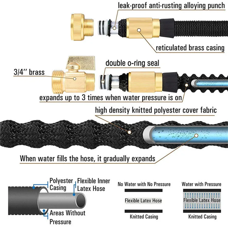 Описание продукта: Название продукта: садовый шланг, шланг для мойки автомобиля Телескопическая Длина 25 футов = (7,5 метров после впрыска воды) 50 футов (15 метров после впрыска воды), 75 футов (22,5 метров после впрыска воды) 100 футов (30 метров после впрыска воды), Оригинальная Длина: 25ft-2.5m, 50ft-5m, 75ft-7.5m, 100ft-10m Материал внутренней трубки: трехслойный утолщенный tpe Класс 1: Все фотографии настоящие, прямые продажи с фабрики, могут быть настроены