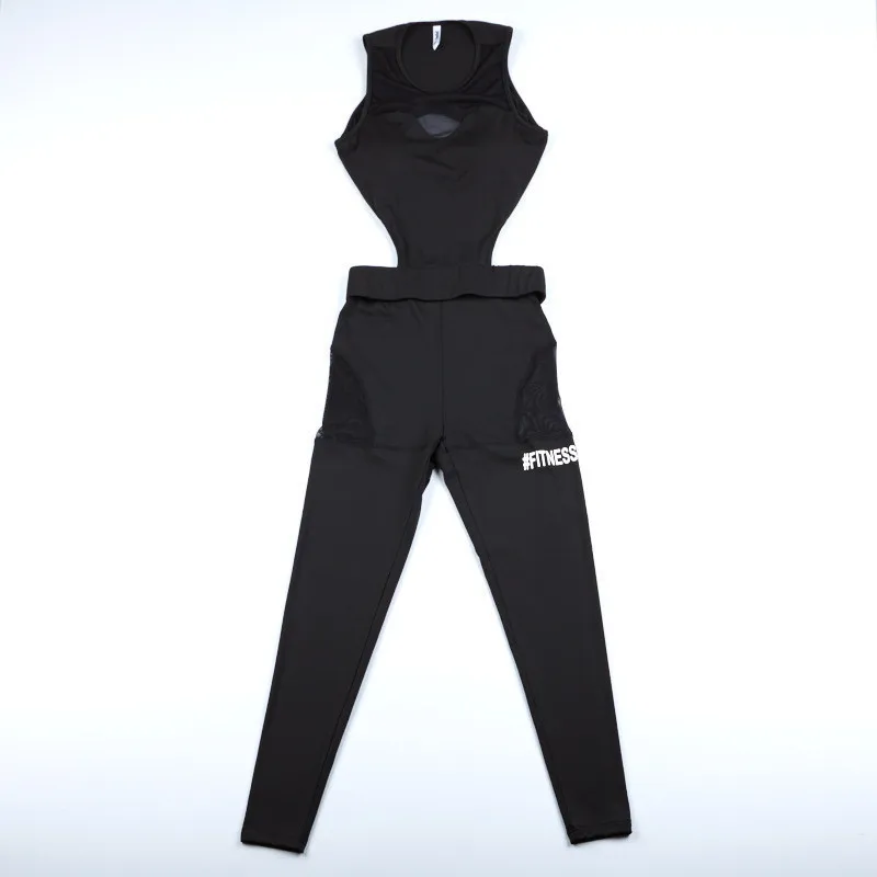 2018 комбинезон для фитнеса черный спортивный костюм для занятий спортом, спортивная одежда сетки шить Йога Комплект женский пуховик пикантные L спортивный костюм