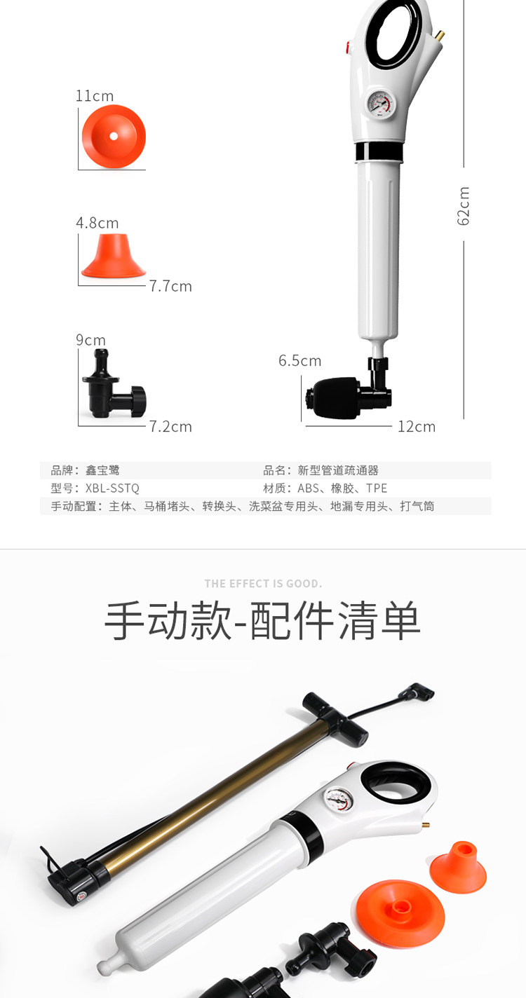 Ручная конфигурация: основной корпус, вилка для унитаза, адаптер, специальная головка для раковины, специальная головка для слива пола, насос