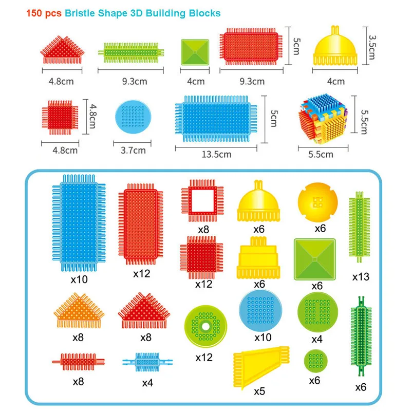 Креативность за пределами фантазии-3D щетиной формы, строительные блоки для дошкольников, притворяться, играть и многое другое. Легко конструировать и легко хранить для хранения. В коробке-100 x 3d-блоков с щетиной.