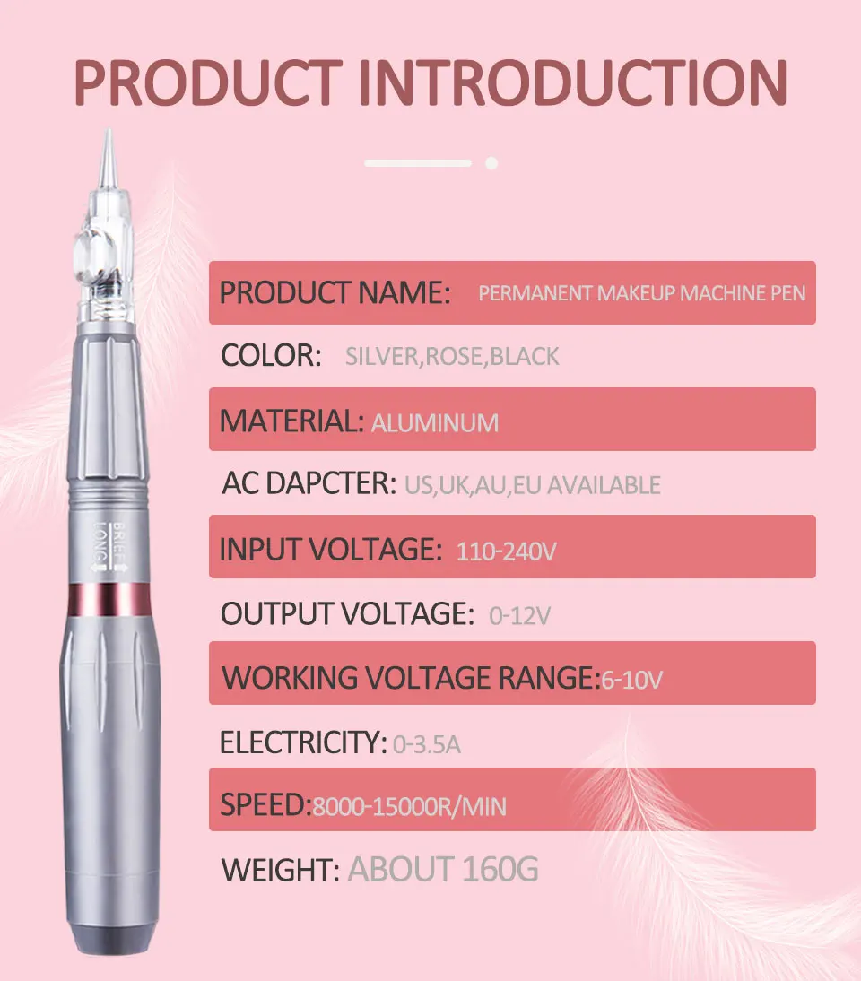 Внимание: пожалуйста, выберите понравившийся цвет. Используется в технике чистого металла, космическом серебристом цвете, никогда не стирается; Установлен сЯпонский моторИОригинальный японский подшипникВысокая скорость, 15000р/мин, высокая производительность; Вращение стабильно, меньше вибрации, низкий уровень шума; Подходит для бровей, век и губ, это также очень полезно в дизайне татуировки тела; Длина иглы регулируется от 0-3,5 мм; Комплект с крышкой для ручки, безопасный и удобный; Срок службы в два раза длиннее обычных машин для перманентного макияжа.Посылка:1 * ручка для тату