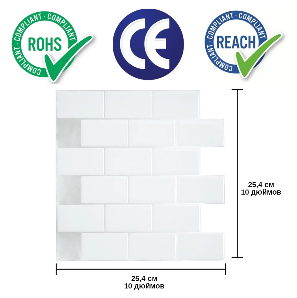Модель: 6 упаковок 3D наклейки на стену (белый кирпич) Размер одной наклейки на стену: 25,4x25,4 см (10 х 10 дюймов) Зона покрытия: 4 квадратных фута (0,38 квадратных метров) Особенности: Термостойкий/Огнестойкий/водонепроницаемый