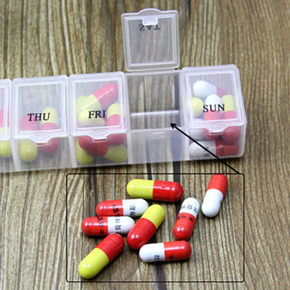 Прозрачные цвета (синий, розовый, желтый) все ясно с первого взгляда; Есть расписание, напечатанное на крышках чехлов, и в каждой строке форма в неделю, очень организованная; Маленькое арочное отверстие на каждой крышке для легкого открытия, не повреждая ноготь; Подходит для профессионального или домашнего использования.