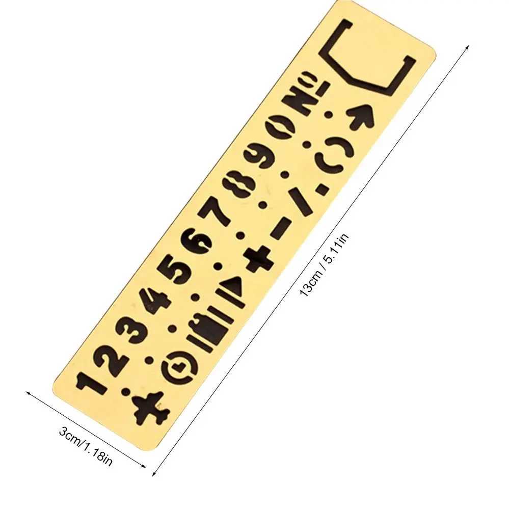 Винтажная латунная Линейка-закладка, многофункциональная линейка-шаблон для рисования, цифровая буквенная пустая ручная линейка, линейка, школьные принадлежности