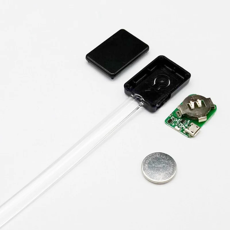 Максимальная длина 37,5 см, ширина 2,5 см, в комплект входят 2 аккумулятора CR2032