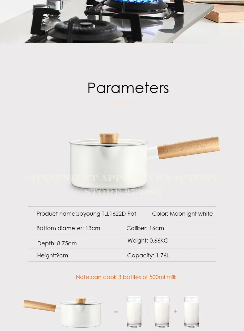 Название продукта: многофункциональный горшок Joyoung TLL1622D Цвет: белый Диаметр дна: 13 см Калибр: 16 см Глубина: 8,75 см Емкость: 1,76л (может варить 3 бутылки молока 500 мл) Высота: 9 см Вес нетто: 0,66 кг