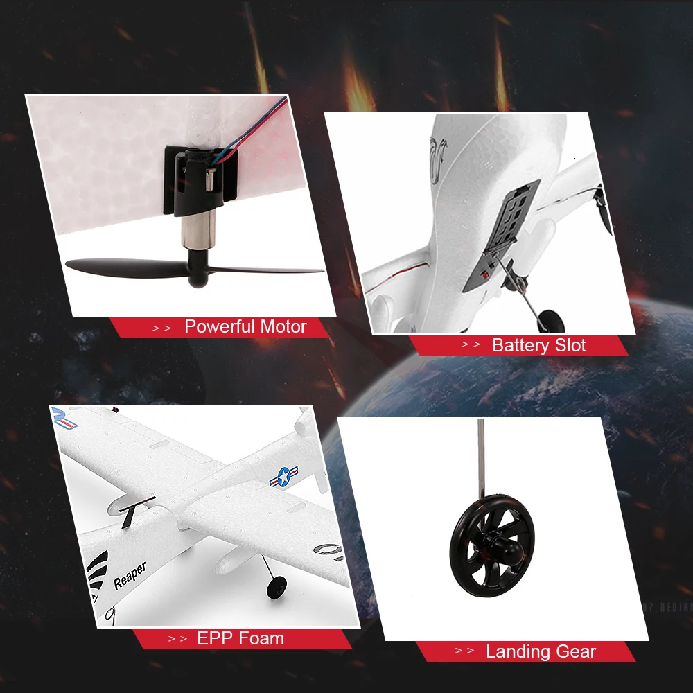 Вы слышите о бойцовском MQ-9 дрона? Ну, этот самолет разработан в соответствии с MQ-9 реальным Самолетом-с супер крутым белым внешним видом. Он имеет функцию вверх/вниз, вперед/назад, поворот влево/вправо, 3D флип. Вес полета 67 г. Размер руля регулируется, и вы можете вращать на 360 градусов, управляя вверх/вниз палкой. В любом случае, это хорошая игрушка с фиксированным крылом для детей и взрослых!