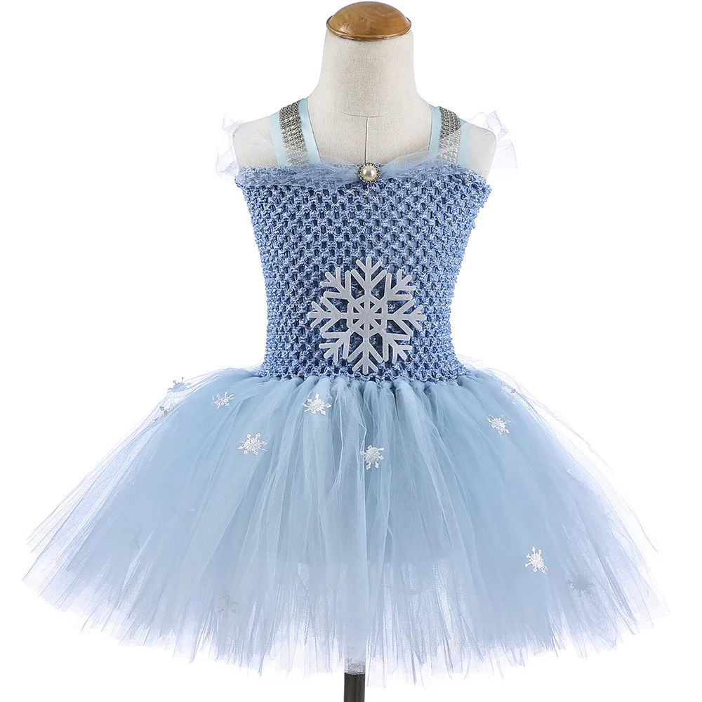 Светильник, голубое платье-пачка принцессы со снежинками платья-пачки Эльзы до колена для девочек, вечерние платья на день рождения Детские костюмы на Хэллоуин