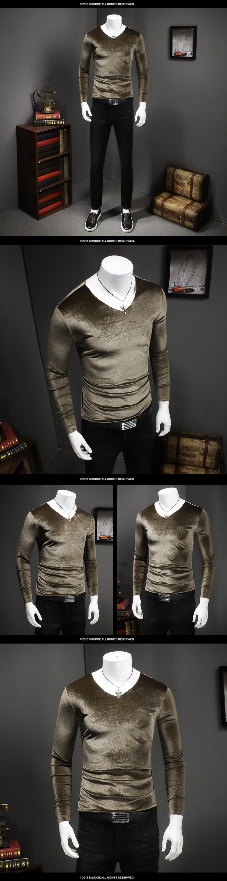 Мужская Золотая Бархатная Осенняя рубашка в Корейском стиле