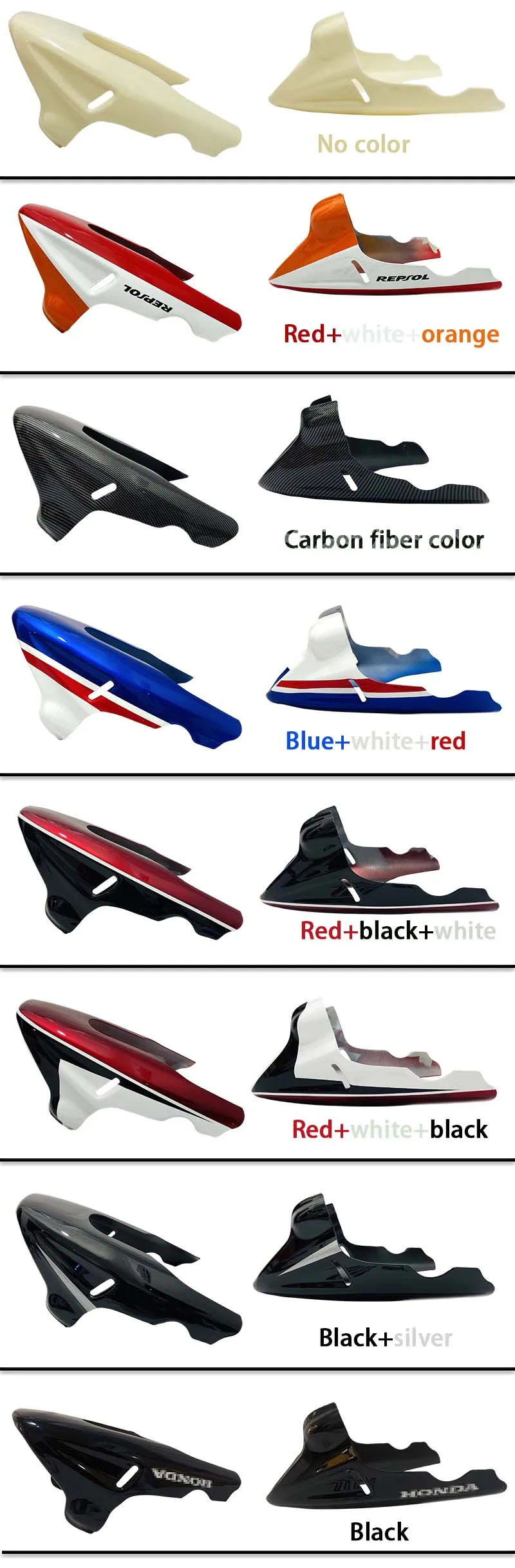 1: материал ABS, механическое литье под давлением 2: поверхность окрашена, внутренний слой не окрашен 3: Цвет можно подгонять, отправить изображение цвет на заказ 4: Этот продукт является модифицированной частью, и друзья, которые должны изменить его, могут заказать его, и вы должны знать, как модифицировать и устанавливать этот продукт, или вы можете взять его в ремонтный магазин для профессионалов, чтобы установить его. У этого продукта нет отверстий для болтов, и вам нужно самостоятельно просверлить отверстия для болтов. Хорошо сочетается с положением отверстия для болт мотоцикла