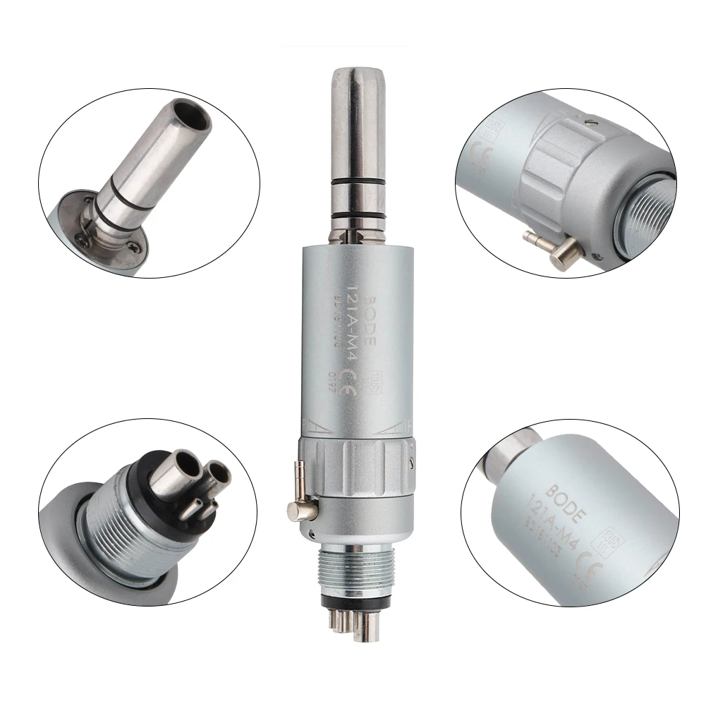 Особенности: Описание Тип: Низкая скорость наконечник 1:1 соотношение Подача воздуха: 0,30 МПа-0,35 МПа Скорость вращения: ≥ 18,000р/мин Тип патрона: патрон защелки BUR применимо: Φ2.345-2,355 мм Шум: ≤ 70 дБ