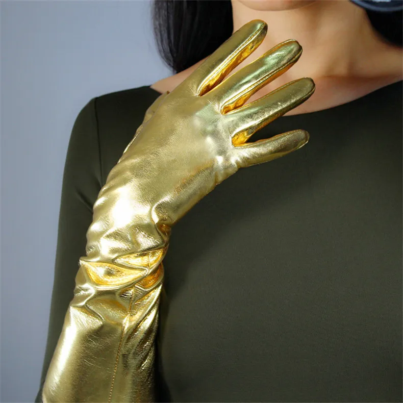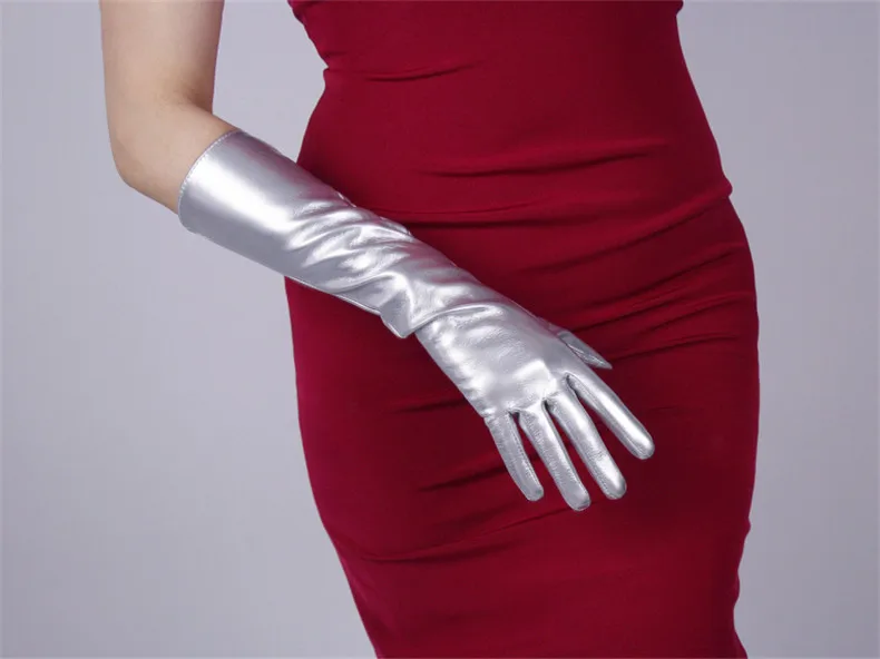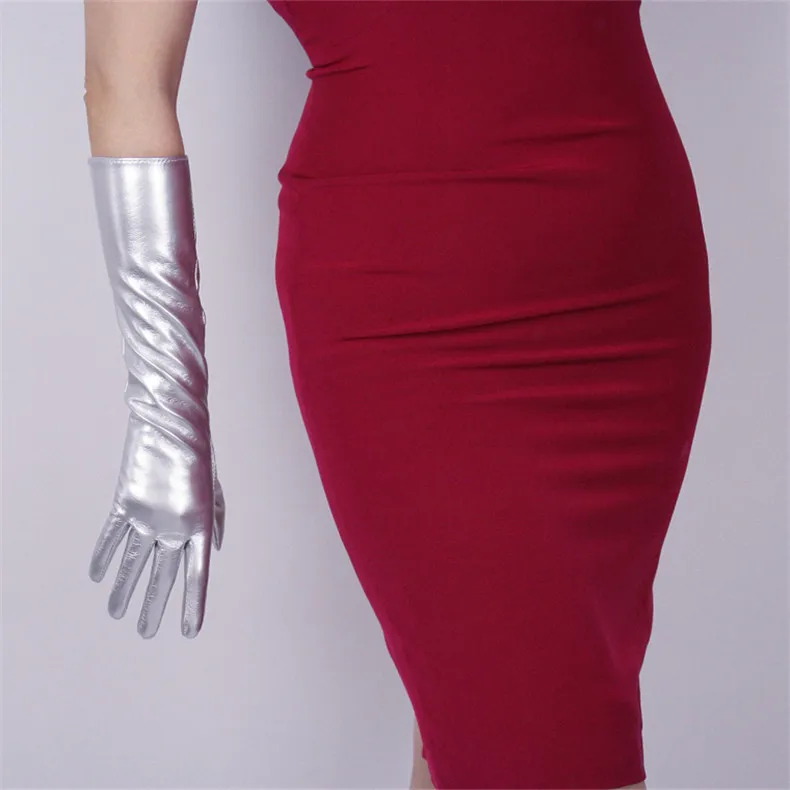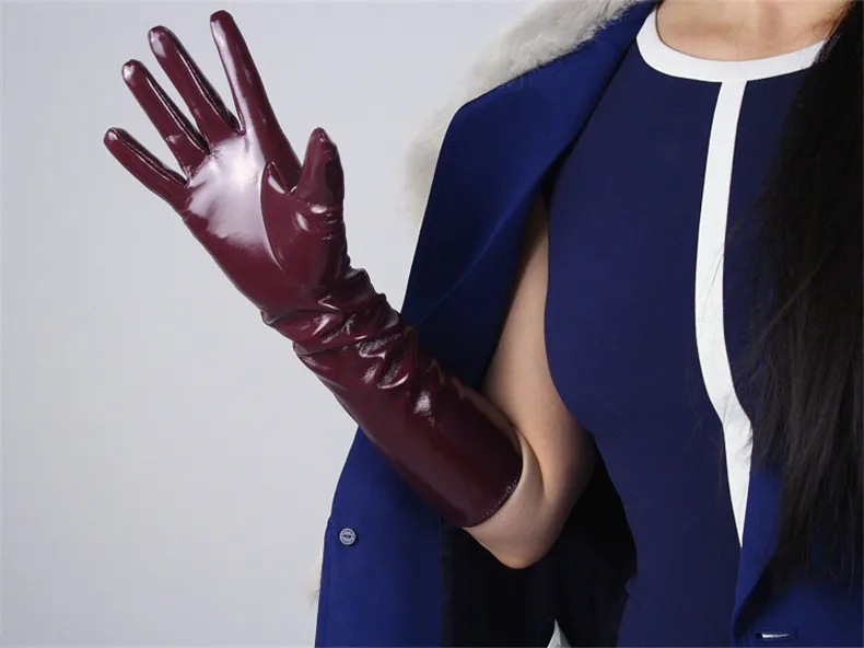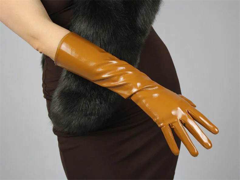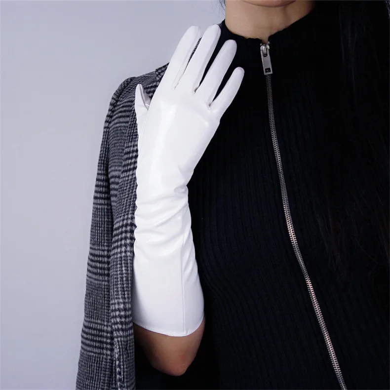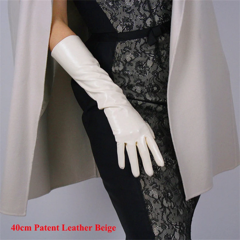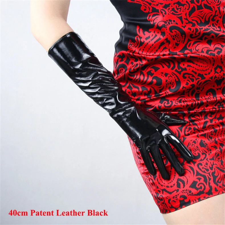 40 см, длинные перчатки из лакированной кожи, яркие, белые, черные, коричневые, лакированная кожа, красная кожа, искусственная кожа, WPU74-40 для сенсорного экрана