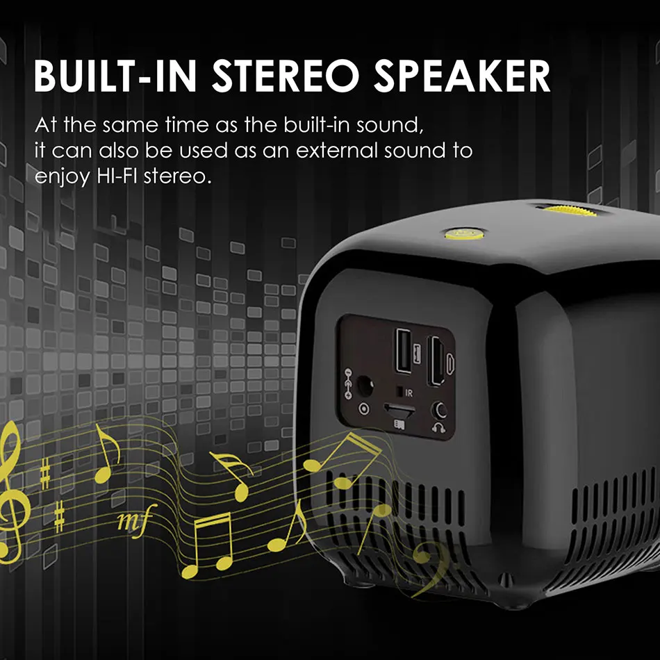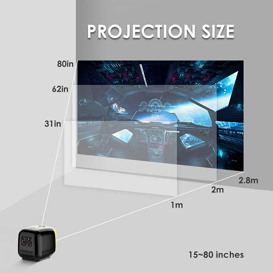 Новейший мини-проектор с уникальным дизайном, поддерживает Full HD 1080P, может быть установлен на 23 языках, 80-дюймовый большой экран, размер ладони, очень портативный, поддерживает несколько мультимедийных каналов, И имеет сильную совместимость. Простота в использовании, так что вы можете наслаждаться домашним театром в любое время дома, или взять его для путешествия в любое время. Отлично провести время для вас и вашей семьи и друзей. Технические характеристики Вес нетто: 460 г Цвет: желто-черный Материал: PC + ABS Соотношение изображения: 16: 9 Максимальное Поддерживаемое разрешение: 1080P Физическое разрешение: 320*240 Расстояние проекции: 0,5-2,8 м Размер проекции: 15-80 дюймов Размер изделия: 12*10*11 см Интерфейс: USB * 1 / HDMI * 1 / TF * 1/аудио выход * 1 / I.R * 1 / Dc порт в * 1 Особенности 【 1080P высокое определение 】с помощью новой диффузной технологии отражения изображения, это может значительно уменьшить усталость глаз, светильник мягкий, и он не повредит ваши очки, попрощайтесь с травмой прямого просмотра телефона. Есть несколько охлаждающих отверстий с обеих сторон фюзеляжа, с высоким разрешением и высоким качеством изображения, что выше, чем другие разрешения на рынке. 【Мультимедийное подключение 】 проектор охватывает множество общих интерфейсов устройств: USB, HDMI, SD, AV, TF слот для карт, наушники, интерфейс питания для адаптации к настройкам домашнего кинотеатра, видеоигр, вечеринок, активного отдыха. Поддержка нескольких форматов изображения, видео и аудио. 【 Встроенный стереозвук 】 в то же время, что и встроенный звук, он также может использоваться как внешний звук, чтобы наслаждаться Hi-Fi стерео. Пять режимов звука: стандарт/музыка/кино/Спорт/пользователь, два вида объемного звука: стереозвук, объемный звук. 【 23 языков 】языки OSD охватывают 23 языка, которые могут удовлетворить языковые потребности разных стран и регионов и свободно переключаться. Четыре режима изображения: стандартный, мягкий, пользовательский, яркий. 【 Портативный и красивый и милый внешний вид и портативный дизайн (4,7*4,3*3,9 дюйма, 1,32 фунта) можно носить с собой, что очень подходит для друзей, семейных вечеринок, корпоративных офисов и т. д. Например, PPT, Word, Excel. Упаковочный лист 1 X Проектор 1 пульт дистанционного управления Руководство по эксплуатации-1 шт. 1 х адаптер питания Советы по заказу Не размещайте устройство там, где оно подвержено чрезмерной пыли и грязи, или вблизи устройств, которые генерируют магнитные поля. Чтобы предотвратить перегрев, Не блокируйте и Не блокируйте вентиляционные отверстия. Защищает оборудование от прямых солнечных лучей, больших температурных колебаний и высокой влажности. Не позволяйте детям управлять оборудованием без присмотра. Когда устройство работает в течение длительного времени и поверхность нагревается, Выключите устройство и отключите питание. Операция может быть восстановлена только после того, как устройство остыло. Пожалуйста, будьте осторожны, чтобы не касаться объектива. Отключите это оборудование во время грозы или При неиспользовании в течение длительного времени.