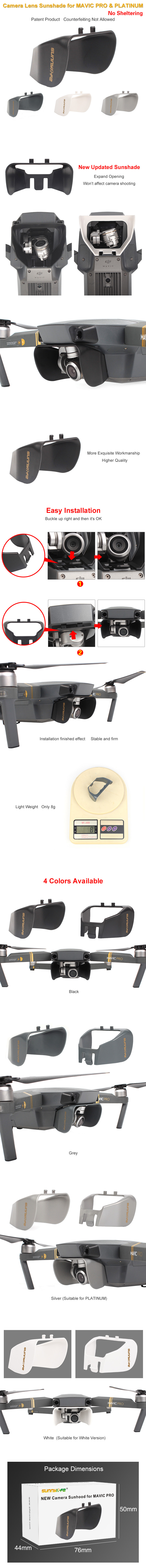 Защита карданного шарнира в случае аварии Литье под давлением с гладкой поверхностью Дополнительный светильник, не влияет на светильник f Совместим с DJI MAVIC PRO и PLATINUM Защищает gimbal и камеру и переднюю 3D сенсорную систему от столкновений, пыли и воды во время транспортировки и полета. Прозрачный и легко носить с собой Легко устанавливается/снимается Упаковка включает: 1x крышка объектива Примечание: Не включает Дрон