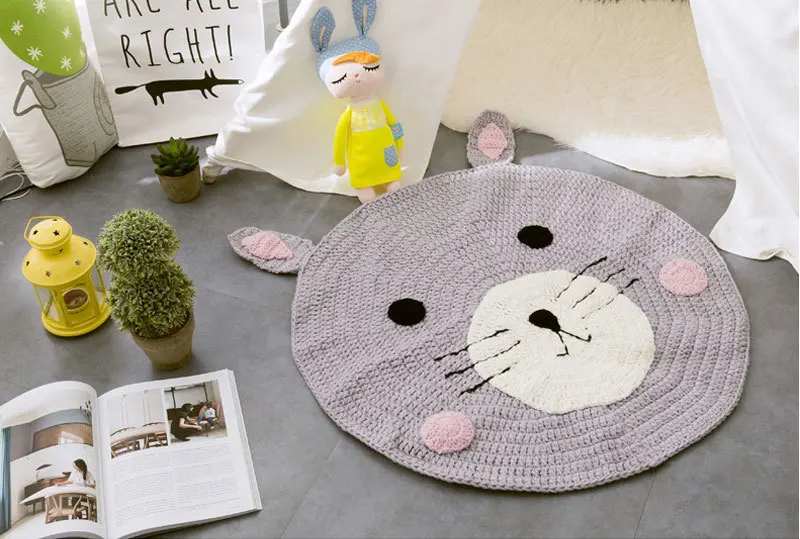 LDAJMW ручная работа животных Детская тканая шерсть одеяло INS в скандинавском стиле круглый коврик ползающий коврик сплошной цвет ковер с кроликом
