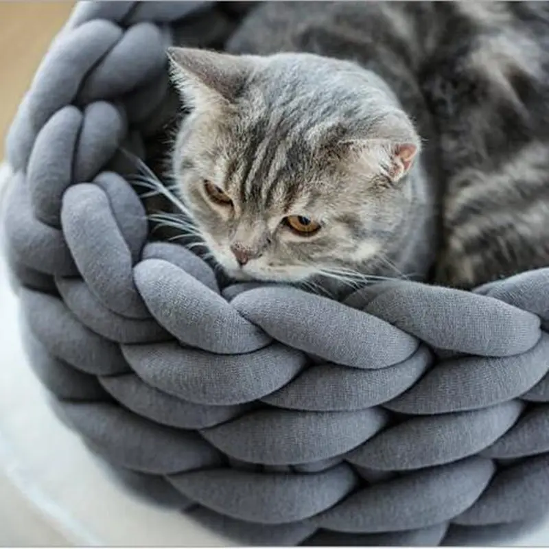 30/35/40 см DIY ручной работы из грубой шерсти домашних животных гнездо кошка кровать уютный зимний теплый дом собаки вязанная Плотная вязаный питомник коврик для домашних животных25