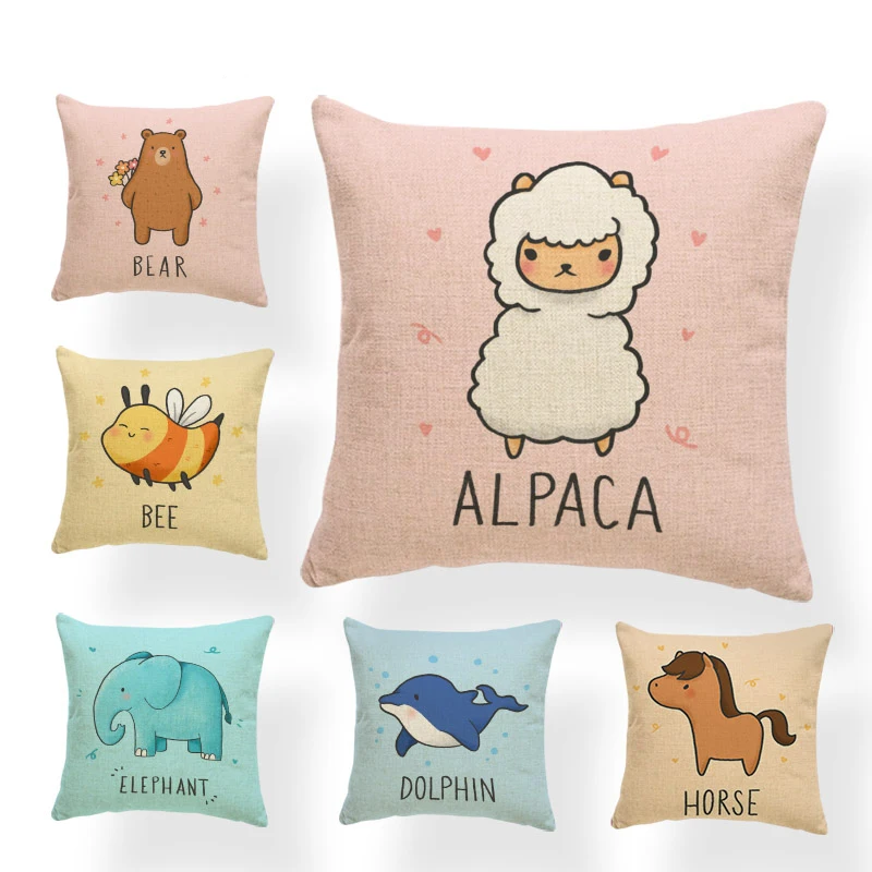 Пушистая Милая наволочка, текстовая Овечка, пчела, дельфин, панда, наволочка, украшение для дома, диван, полиэстер, лен, 45*45 см, подушка, коала, медведь, жираф, кошка, панда, слон, лиса, фламинго, лося, осьминог