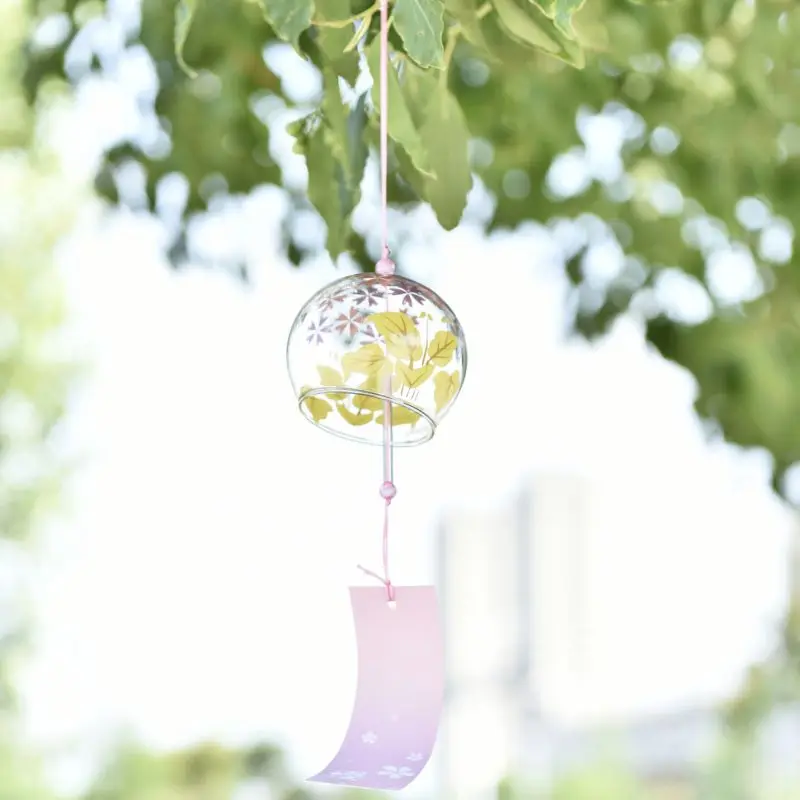 Украшение ручной работы в японском стиле из прозрачного стекла с подвесным орнаментом с цветочным узором.