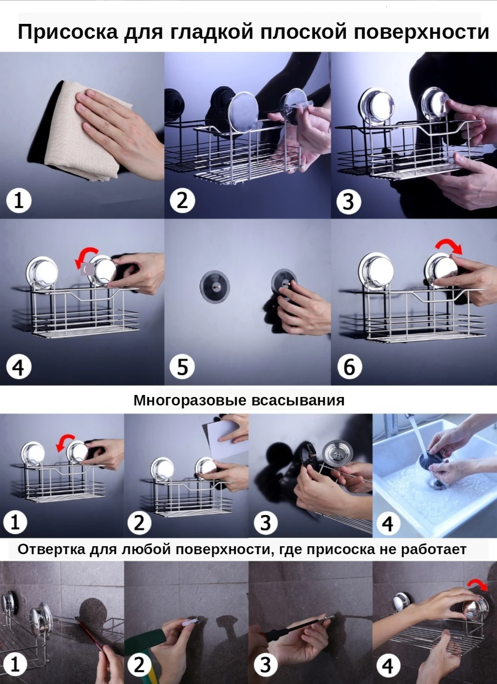 (Винты и Инструкция по установке включены). Присоски совместимы с гладкими и плоскими поверхностями, такими как керамическая плитка, стекло, зеркало и т. Д. Винты совместимы с любой поверхностью.