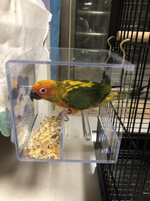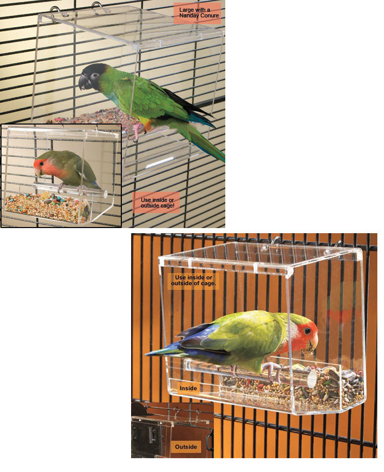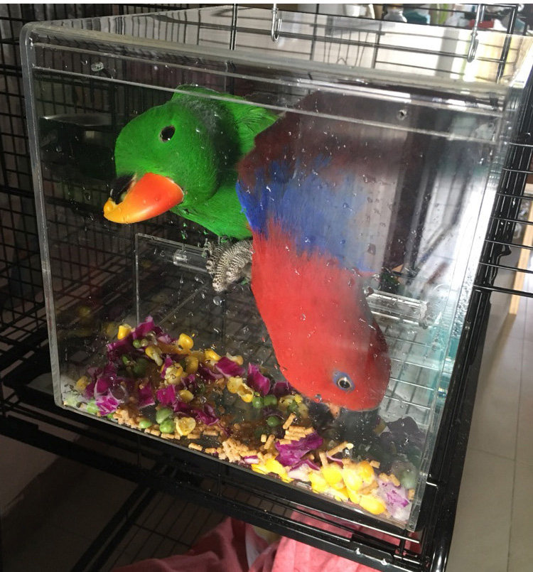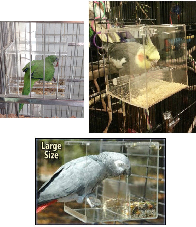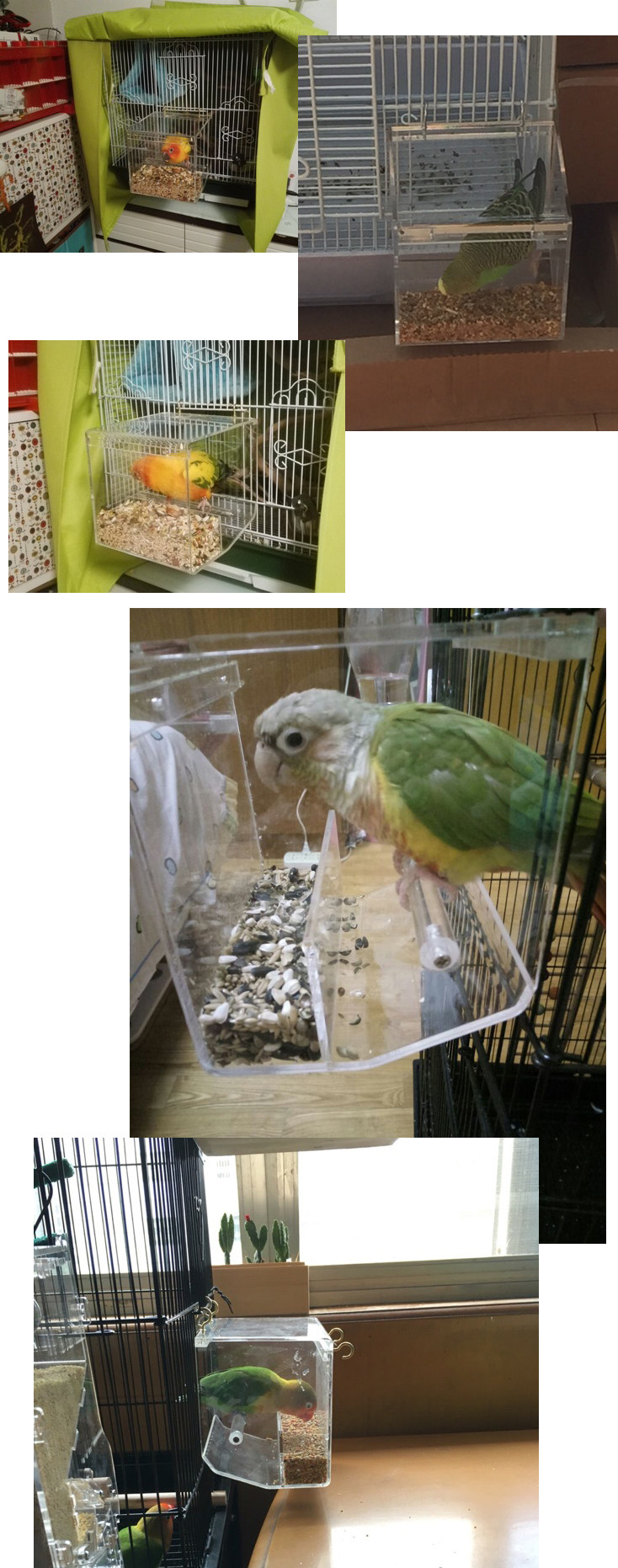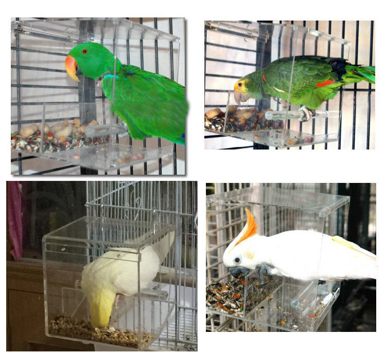 Размер: S:13*11*13 см M:16*16*16 см L: 21*21*21 см Материал: акрил 4 мм Этот пищевой ящик эффективен для предотвращения вылета пищи из клетки, гигиеничен и чист. Его можно повесить или подключить удобно. Маленький Подходит для кожи тигра, пиона и других маленьких попугаев, средний размер для попугаев среднего размера, таких как монахи, большой размер для крупных попугаев, таких как серые попугаи.