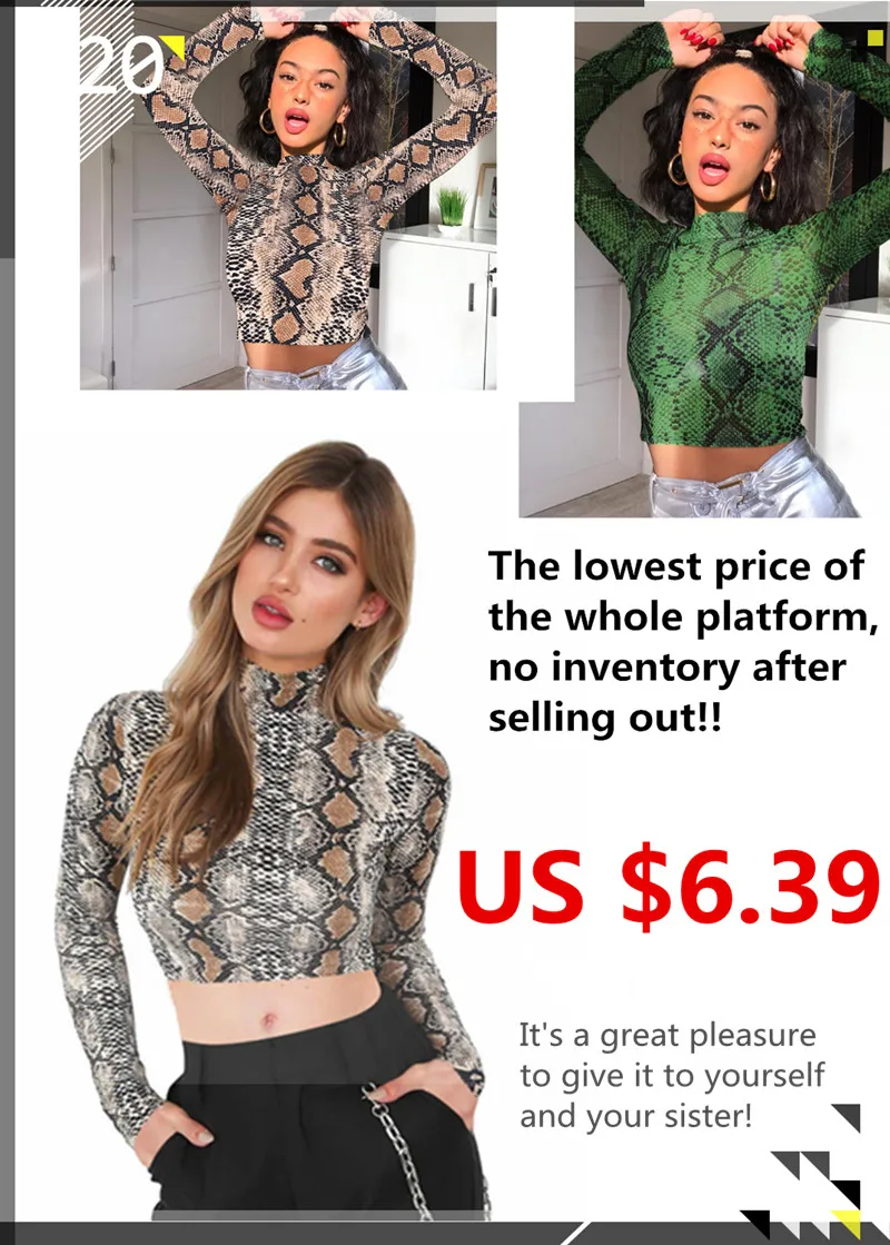 Женские футболки для йоги, модные сексуальные футболки со змеиным узором, водолазка с длинным рукавом и принтом, обтягивающие женские сексуальные футболки для вечеринок
