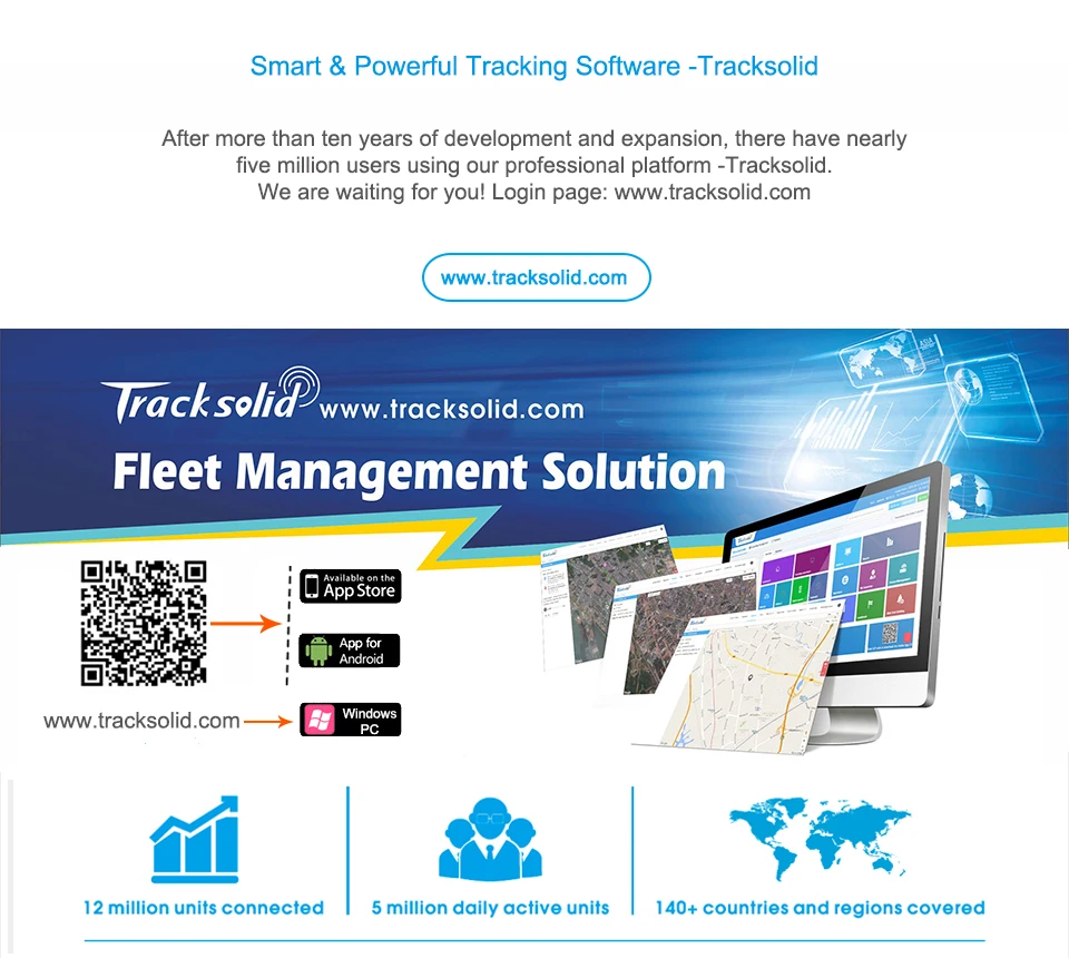 После более чем 10 лет развития и расширения, есть почти пять миллионов пользователей, использующих нашу профессиональную платформу-Tracksolid. Мы ждем вас! Страницу входа: www.tracksolid.com Выберите первый год бесплатно: означает, что вы можете использовать платформу отслеживания в течение одного года, после того как вы хотите продолжить эту платформу, вам нужно связаться с нами, чтобы заплатить 8 долларов США, чтобы изменить ее на всю жизнь бесплатно. Если вы выбираете пожизненный бесплатно, вам не нужно будет платить плату за платформу навсегда.