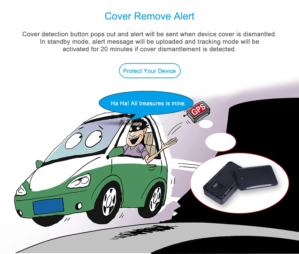 Когда в вашем автомобиле происходят аномалии, например, если кто-то столкнется, разбивает или царапает автомобиль, устройство отправит телефонный сигнал, чтобы вовремя найти соответствующего человека.