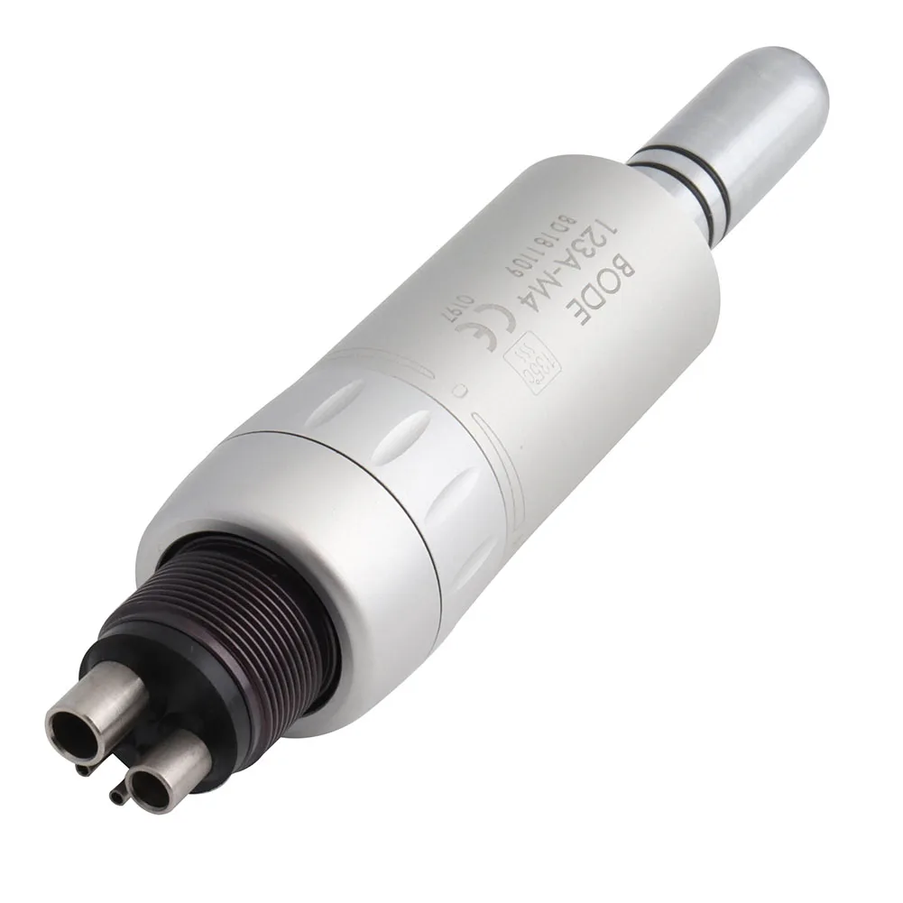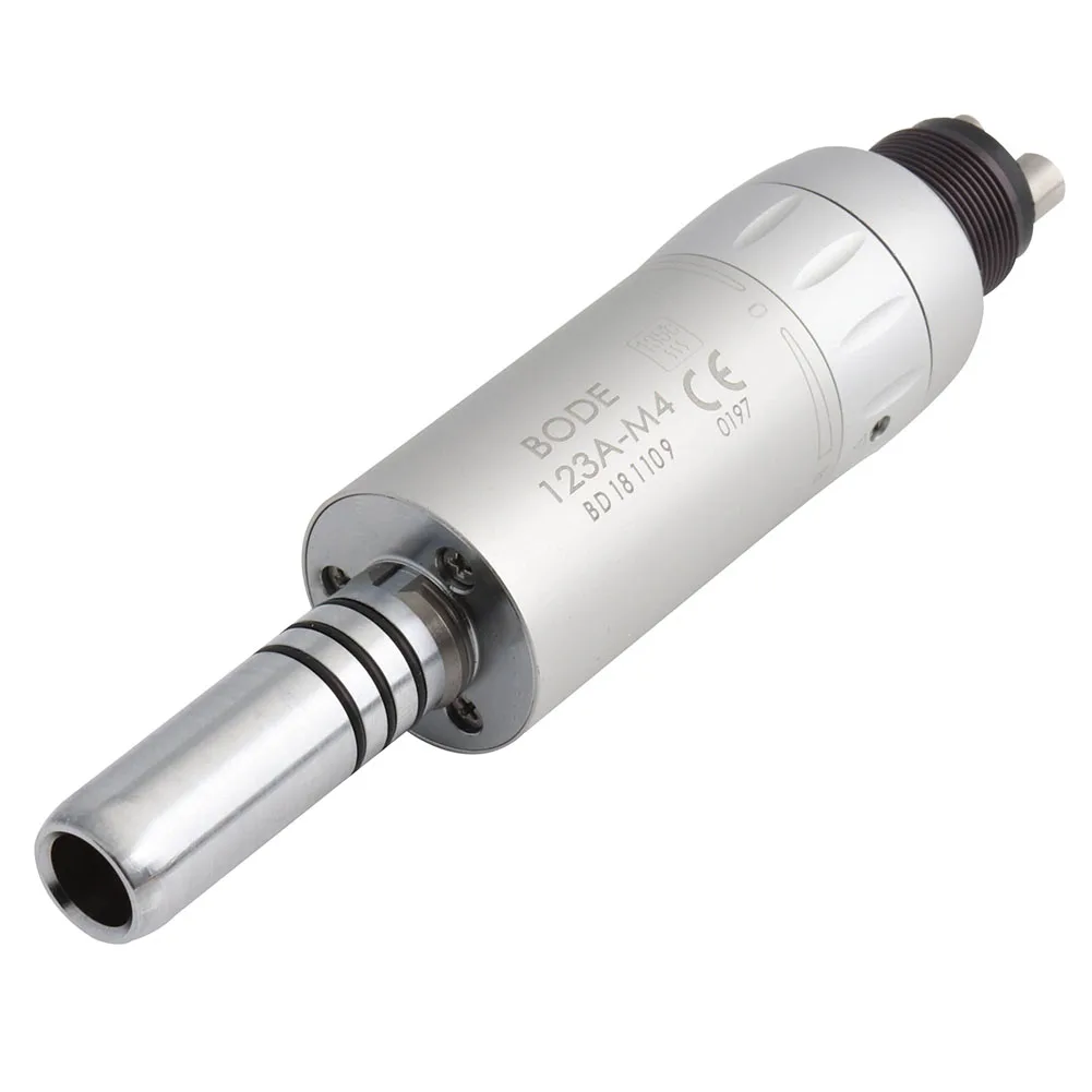 Особенности: Бренд: BODE Тип наконечника: низкая скорость Тип распыления: внутренний распылитель воды Тип патрона: ручной патрон Совместимость шлангов: 4 отверстия (Midwest) M4 Источник питания: пневматический/Воздушный Давление воздуха: 0,30 МПа-0,35 МПа Скорость вращения: ≥ 18000 об/мин Бур применимый: значение 2,345-2,355 мм Шум: ≤ 70 дБ Предназначение/дисциплина: стоматология/стоматология