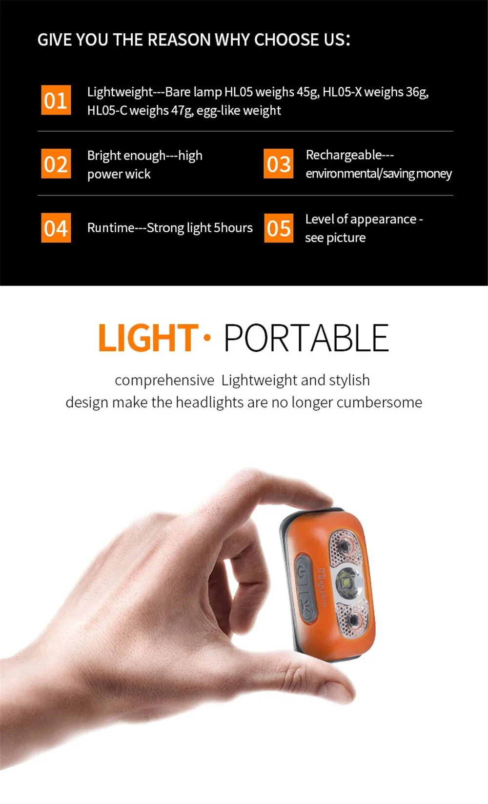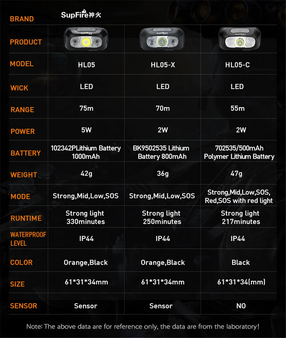 Максимальная яркость: 1000 люмен Дальность действия: 74 метра Цветовая температура: 6000K Максимальная мощность: 5 Вт Светодиодный лампы: CREE-XPR2-R5 Водонепроницаемость: IP44 Индукционное расстояние переключателя датчика: 10 см Длина: 61 мм Размер головки: 31 мм Размер хвоста: 34 мм Вес: 58 г (включая батарею) Встроенный аккумулятор 1000 мАч Цвет: черный/оранжевый серый Максимальная яркость непрерывное время освещения: 320 минут Время перезарядки: 200 минут