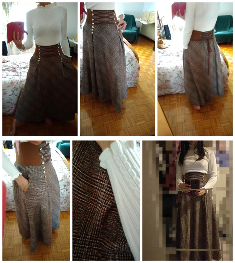 Винтажный Женский комплект из двух предметов в английском стиле, элегантный вязаный комплект из 2 предметов, свитер, корсет на шнуровке, юбка макси с высокой талией, комплект