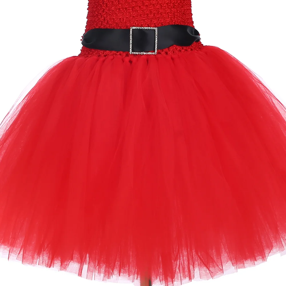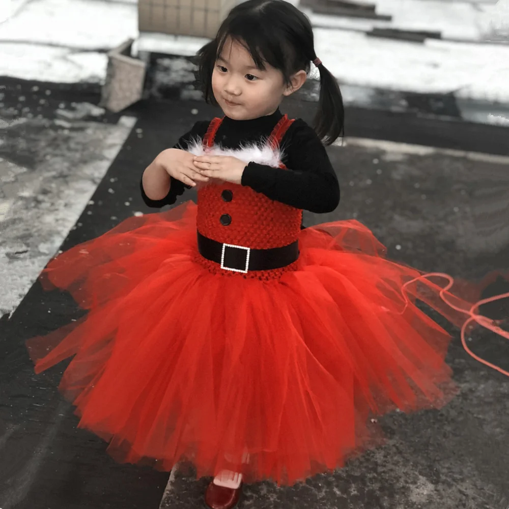 Для девочек Рождественское платье-пачка до колена Длина красного цвета с тюлевой юбкой; Санта Клаус костюм с платьем для девочек на Новый год и Рождество; Вечерние платье для девочек детская одежда От 1 до 14 лет