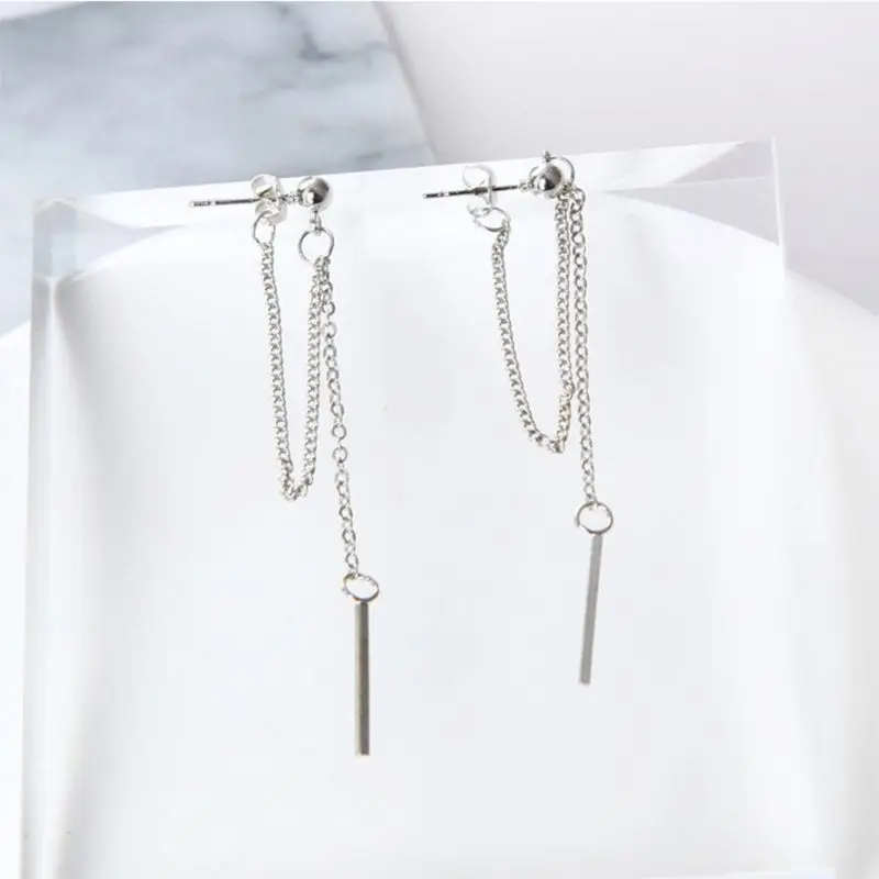 JAVRICK Серебристые двойные висячие серьги с кисточками, корейские модные ювелирные изделия