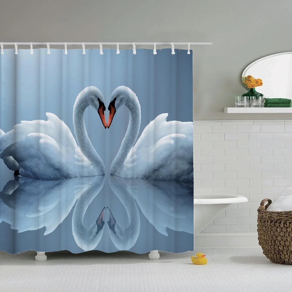 Dafield День Святого Валентина Белый лебедь пара сердце полиэстер ткань Ванная комната занавеска для душа