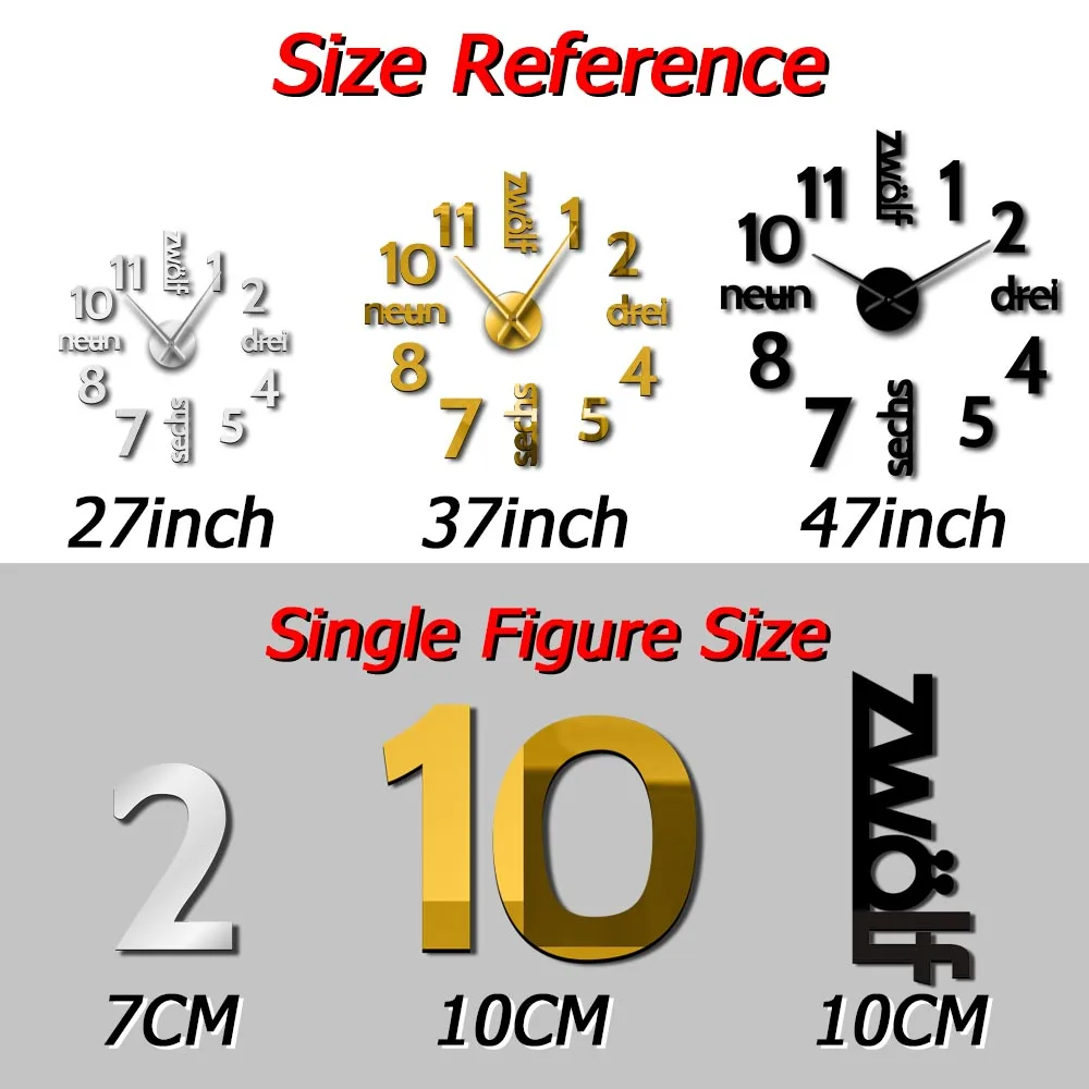 Large clock figure numbers with acrylic mirror surface, this DIY Wall Clock is an amazing stylist and modern decoration for the blank wall.