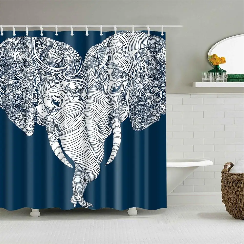 Dafield занавеска для душа с изображением слона, тематическая любовь, ванная комната, занавеска для ванной, белая и темно-синяя занавеска для душа с изображением слона