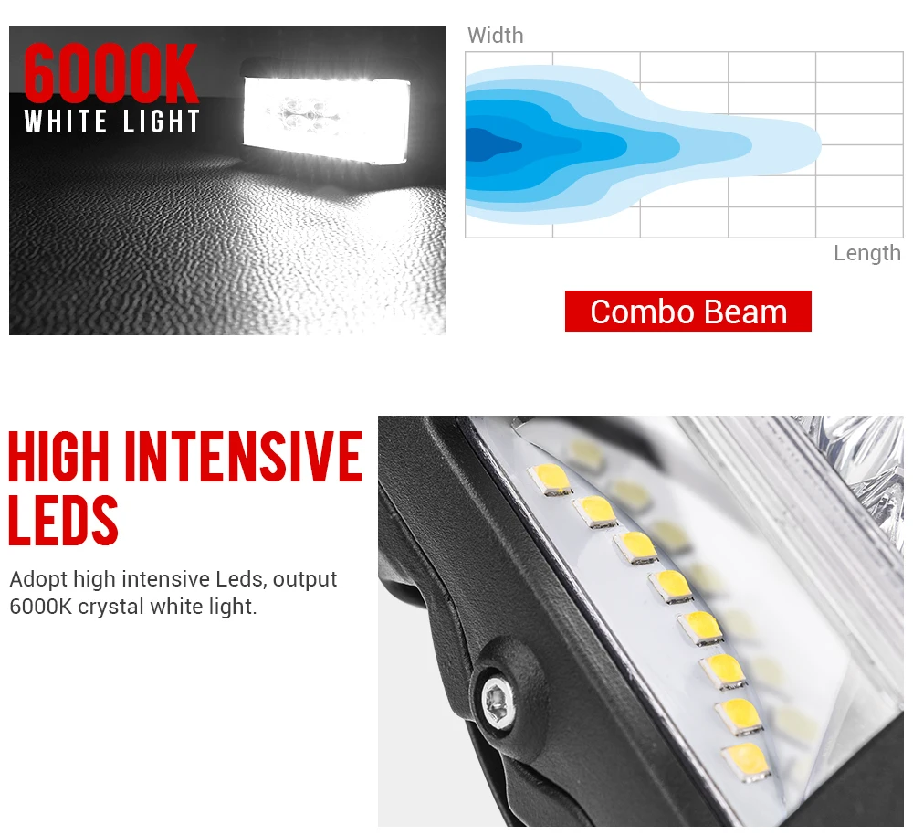 Многоцелевое применение-поставляется с гибкими кронштейнами, легко монтируется на A-столбах, бампере, стойке для крыши или предварительно существующих болтах. Подходит для всех DC 10-30V 4X4 грузовиков ATV SUV Jeep Boat и т. Д.