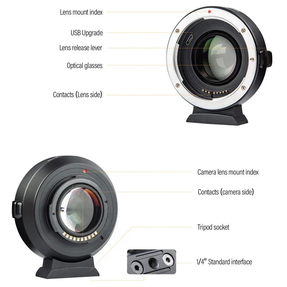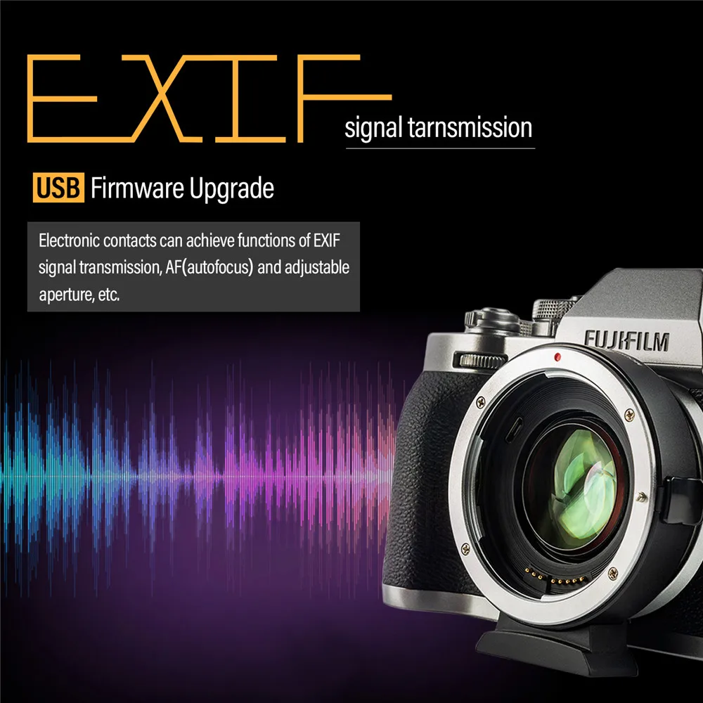 -Viltrox EF-FX2 крепление адаптер позволяет объектива USM Canon EF серии, которые будут идеально устанавливается на Fuji X Крепление беззеркальных камер. -Фокусное расстояние необходимо умножить на 0,71 на основе оригинального (эквивалент фокусное расстояние = фокусное расстояние x 0,71), который помогает увеличить диафрагму 1 уровня. -Также встроены 4 группы, 4 шт. оптических очков. Благодаря монтажу адаптера он может выполнять функции передачи сигнала EXIF, AF (автофокус), регулируемой диафрагмы и т. д. -Обновление прошивки выполняется через usb-порт. Особенности: -С функцией автоматической фокусировки; -Может Увеличить объектив 3 f-stop, увеличивая количество светильник в виртуальном фоновом режиме, может улучшить высокий светильник; -Уменьшение изображения фокусное расстояние, фактическое фокусное расстояние после использования EF-FX2 для 0,71 раз больше, чем фокусное расстояние. -Технология из цинкового сплава, Стабильная и надежная; -Передача сигнала с помощью иглы PIN gold, что значительно повышает производительность передачи; -Кольцо в нижней части с винтами 1/4, которые легко устанавливается на штатив или другой фиксированной кронштейн; Параметры: Модель: крепление для адаптера с разъемом для EF-FX2 Совместимые линзы: Объективы серии Canon EF Совместимые камеры: беззеркальное крепление Fuji X Режим фокусировки: автоматический фокус Фокусное расстояние: 0,71x Оптические очки: 4 группы, 4 очки Обновление прошивки: порт обновления USB Разъем штатива: Cu1/4 "× 1 Диаметр и длина: 68 мм × 27 мм Вес: прибл. 145 г (без крышки) Передняя крышка: крышка камеры Задняя крышка: Пылезащитная крышка объектива Совместимость: -Объективы серии EF для Canon -FUJIFILM GFX X-T1/X-T2/X-T3/X-T100/X-T10/X-T20/X-H1/X-PRO2/X-PRO1/X-E1/X-E2/X-E3/X-E2S/X-A1/X-A2/X-A3/X-A5/A-10/X-A20 Посылка включает в себя: 1 х Viltrox EF-FX2 Крепление-адаптер для объектива Пылезащитный колпачок для объектива-1 шт. 1 х Руководство пользователя